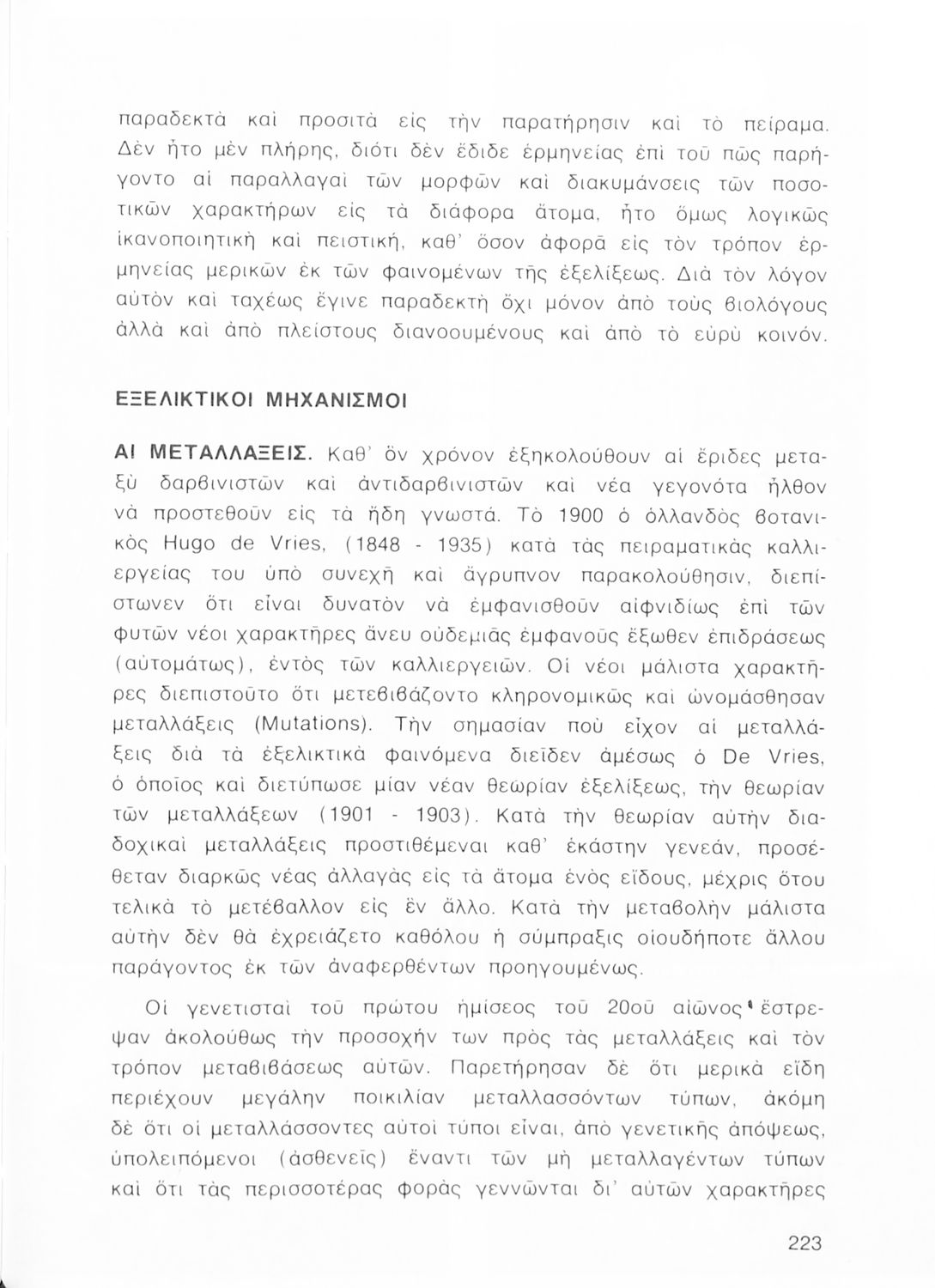 Σχολικό εγχειρίδιο Βιολογίας ΣΤ΄ Γυμνασίου που εστιάζει στις συνθήκες γέννησης, μεταβολής και θανάτου των έμβιων οργανισμών. Ο συγγραφέας ήταν υφηγητής του Πανεπιστημίου Αθηνών.