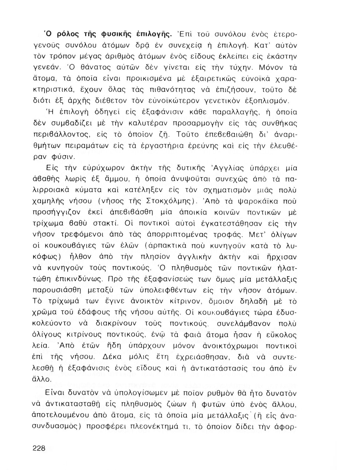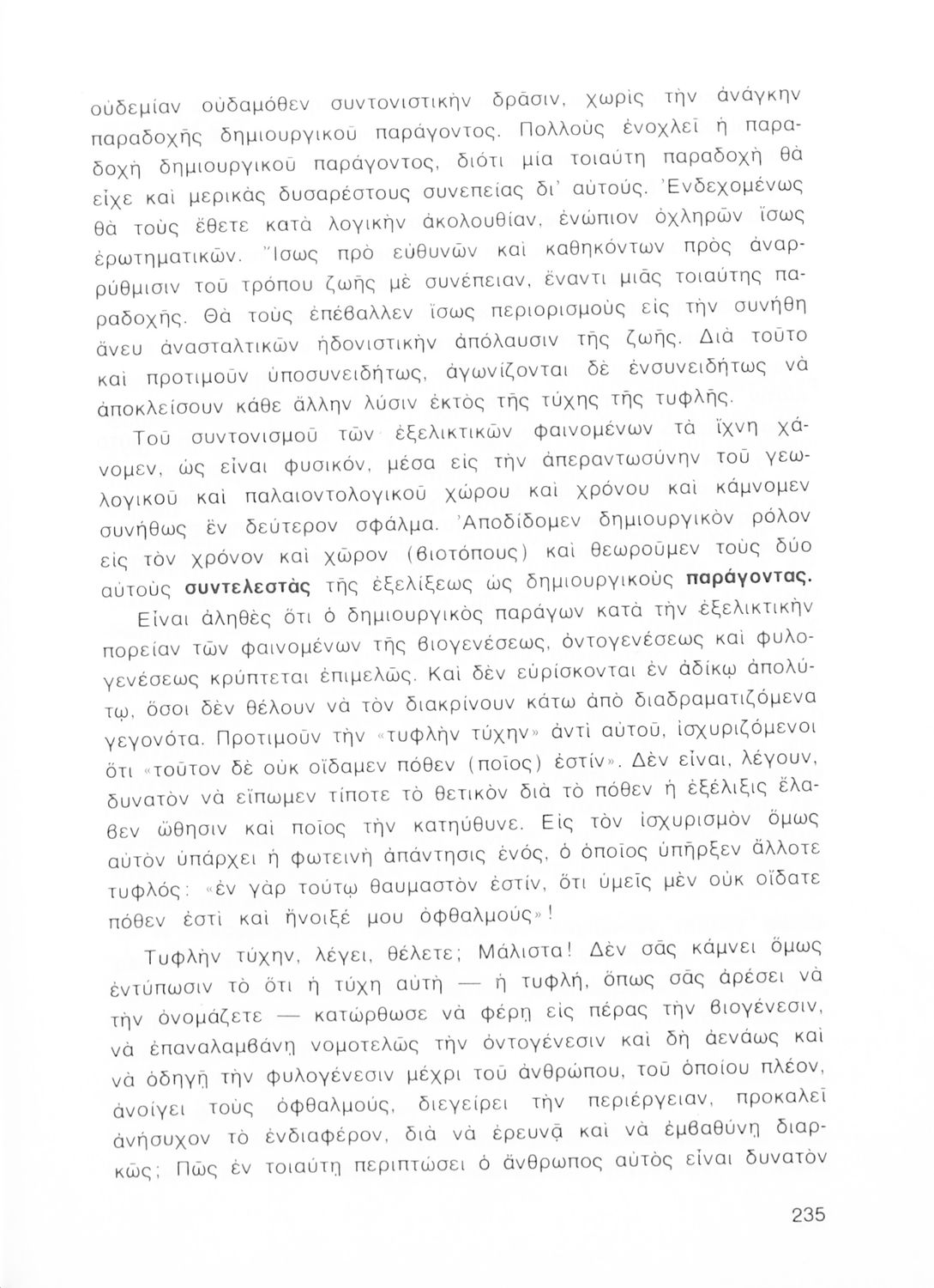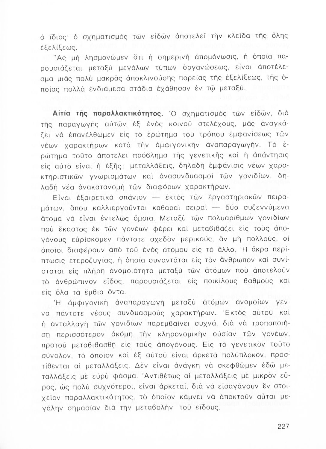 Σχολικό εγχειρίδιο Βιολογίας Δ΄ Γυμνασίου που εστιάζει στις συνθήκες γέννησης, μεταβολής και θανάτου των έμβιων οργανισμών. Ο συγγραφέας ήταν καθηγητής της γενικής Βιολογίας στο Πανεπιστήμιο Αθηνών.
