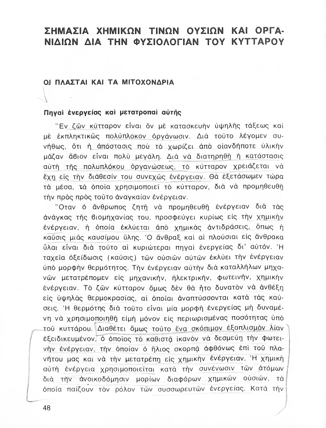 Σχολικό εγχειρίδιο Βιολογίας Δ΄ Γυμνασίου που εστιάζει στις συνθήκες γέννησης, μεταβολής και θανάτου των έμβιων οργανισμών. Ο συγγραφέας ήταν καθηγητής της γενικής Βιολογίας στο Πανεπιστήμιο Αθηνών.