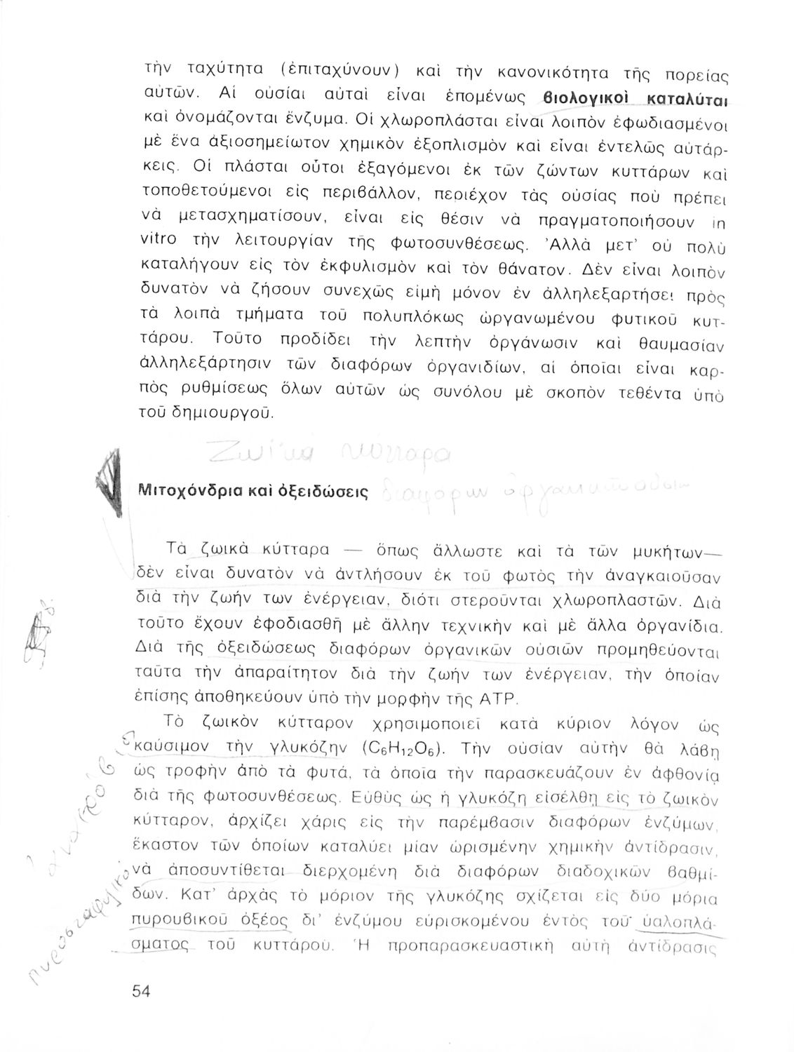 Σχολικό εγχειρίδιο Βιολογίας ΣΤ΄ Γυμνασίου που εστιάζει στις συνθήκες γέννησης, μεταβολής και θανάτου των έμβιων οργανισμών. Φέρει το σύμβολο της δικτατορίας. Ο συγγραφέας ήταν υφηγητής του Πανεπιστημίου ...