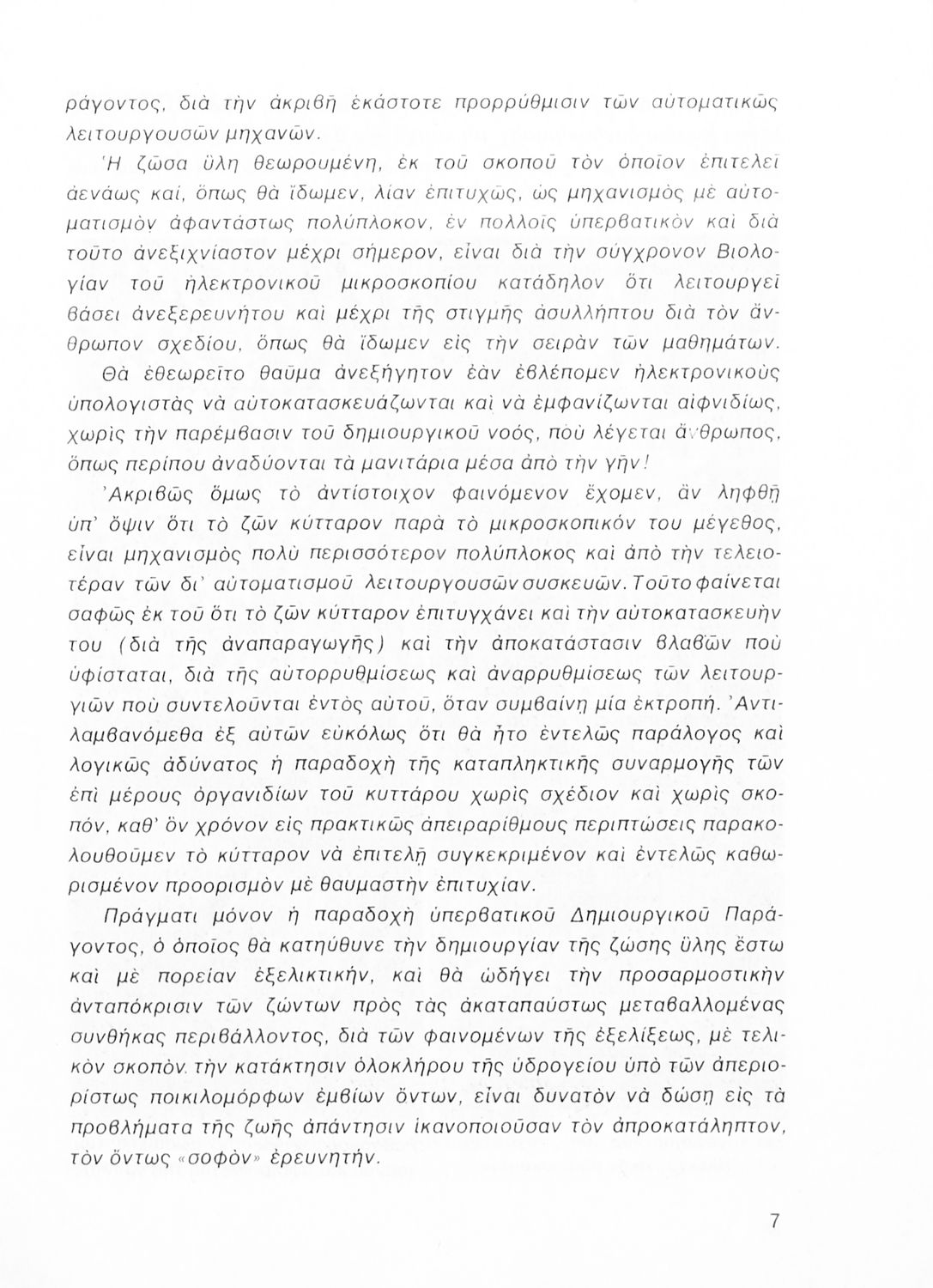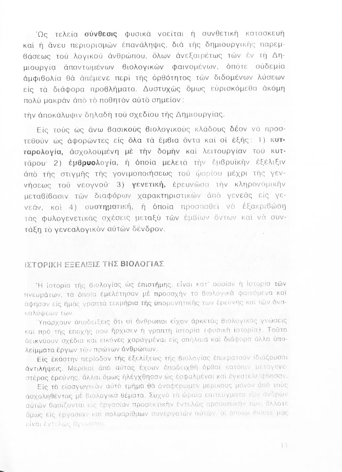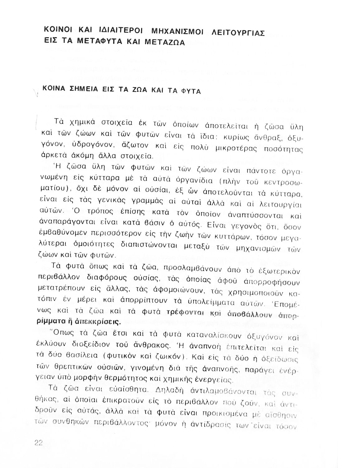 Σχολικό εγχειρίδιο Βιολογίας Δ΄ Γυμνασίου που εστιάζει στις συνθήκες γέννησης, μεταβολής και θανάτου των έμβιων οργανισμών. Ο συγγραφέας ήταν καθηγητής της γενικής Βιολογίας στο Πανεπιστήμιο Αθηνών.