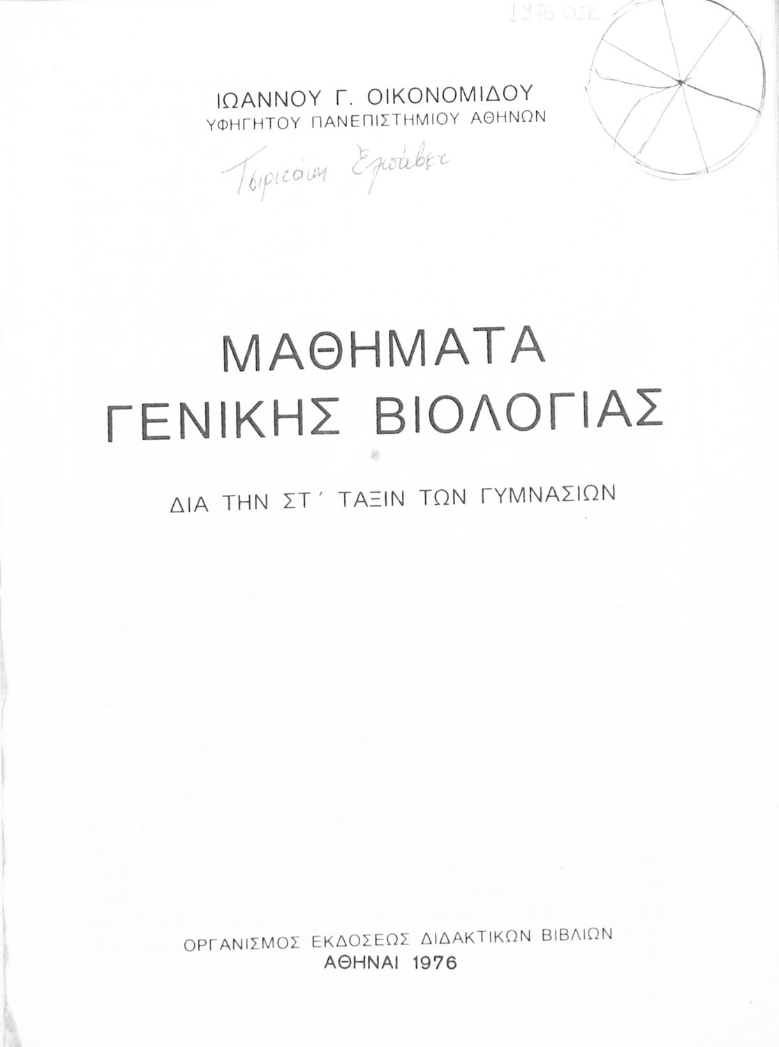 Τίτλος: Μαθήματα Γενικής Βιολογίας δια την ΣΤ΄ τάξιν των Γυμνασίων