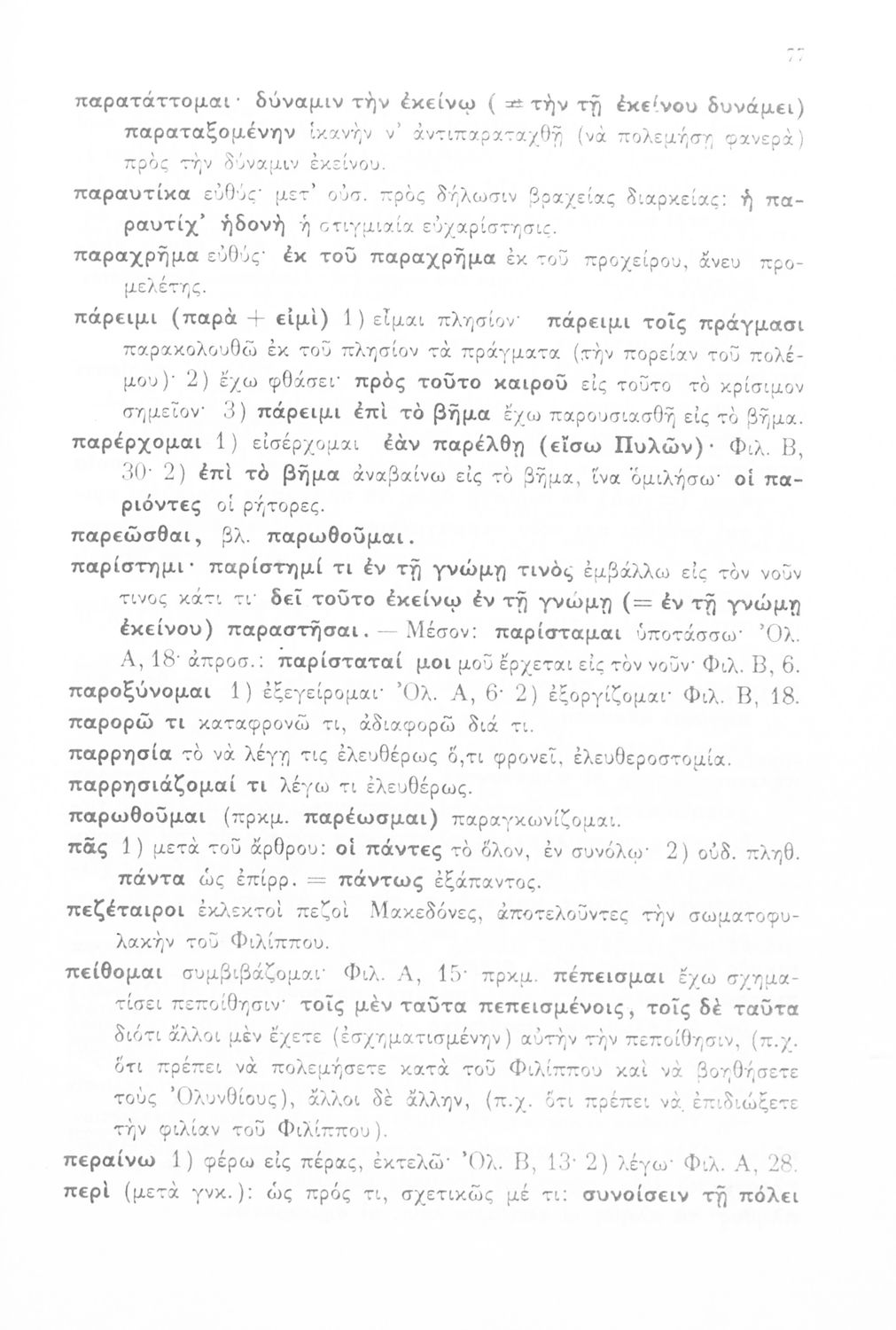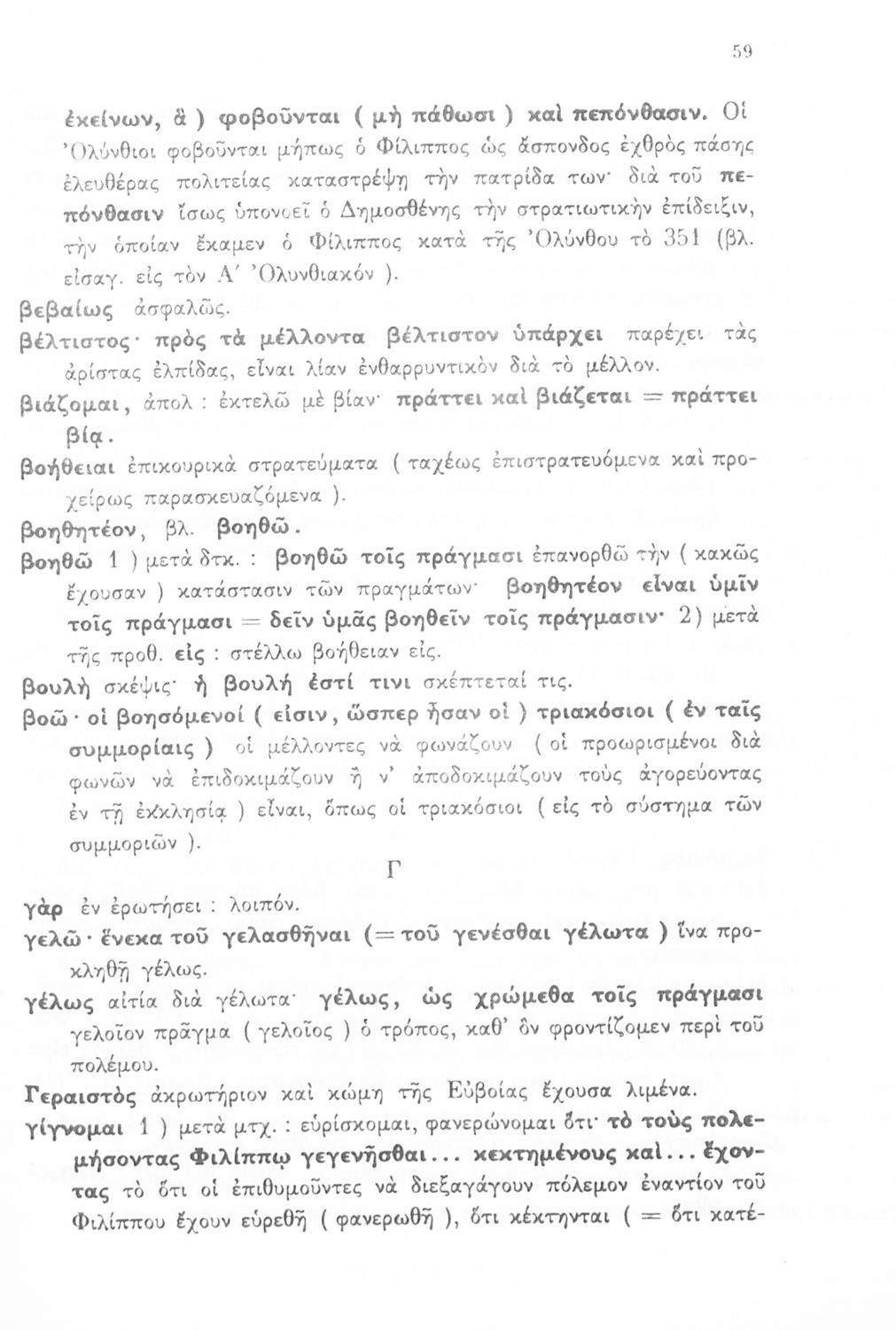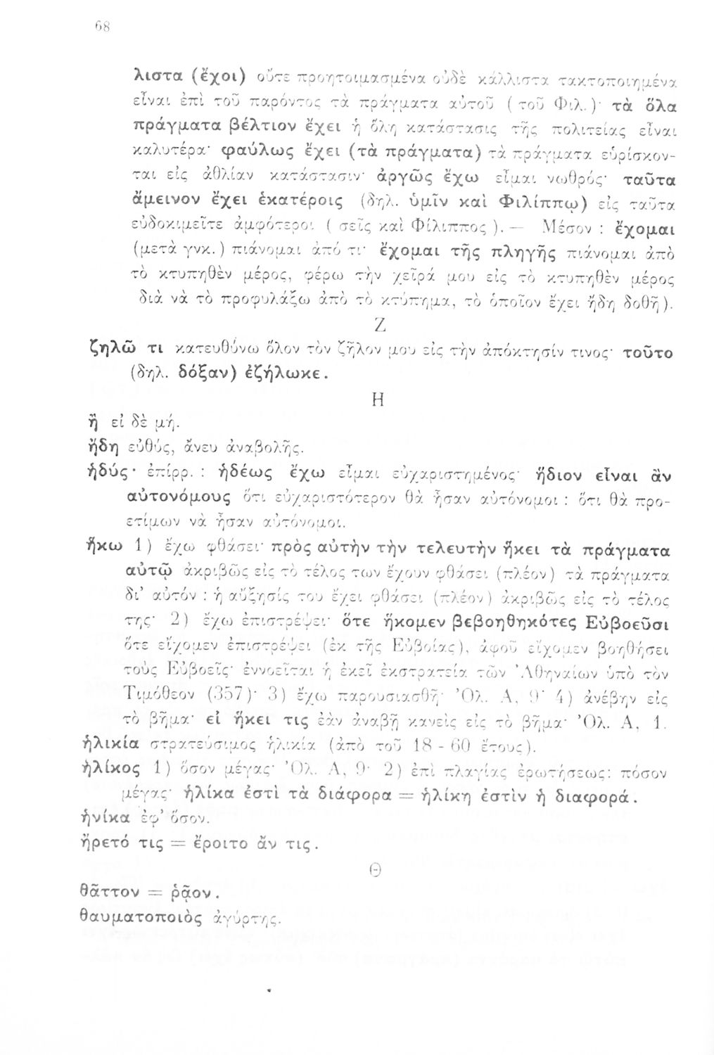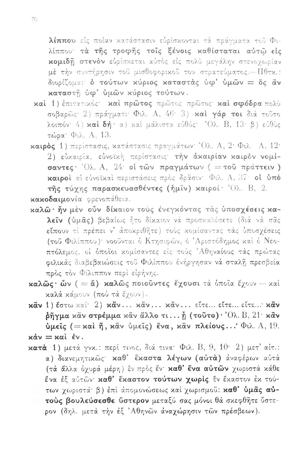 Σχολικό εγχειρίδιο Αρχαίων Ελληνικών Δ΄ Γυμνασίου που περιλαμβάνει εισαγωγή στη ζωή και στο έργο του Δημοσθένη, τον Α΄ κατά Φιλίππου, και τους Α΄ και Β΄ Ολυνθιακούς και ερμηνευτικά και ετυμολογικά σχόλια.