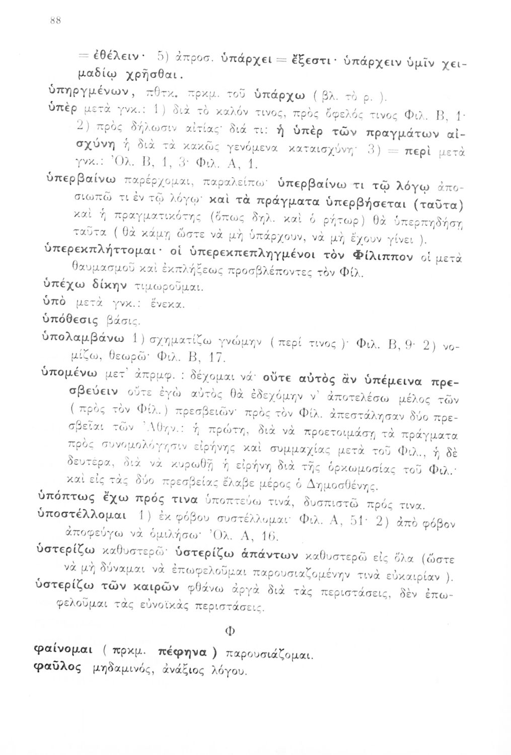 Σχολικό εγχειρίδιο Αρχαίων Ελληνικών Γυμνασίου που περιλαμβάνει τους Ολυνθιακούς Α΄ και Β΄ και τους Φιλιππικούς Α΄ και Β' του Δημοσθένη, εισαγωγή και ερμηνευτικά σχόλια.