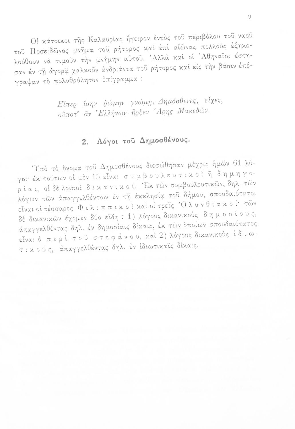 Σχολικό εγχειρίδιο Αρχαίων Ελληνικών Δ΄ Γυμνασίου που περιλαμβάνει εισαγωγή στη ζωή και στο έργο του Δημοσθένη, τον Α΄ κατά Φιλίππου, και τους Α΄ και Β΄ Ολυνθιακούς και ερμηνευτικά και ετυμολογικά σχόλια.