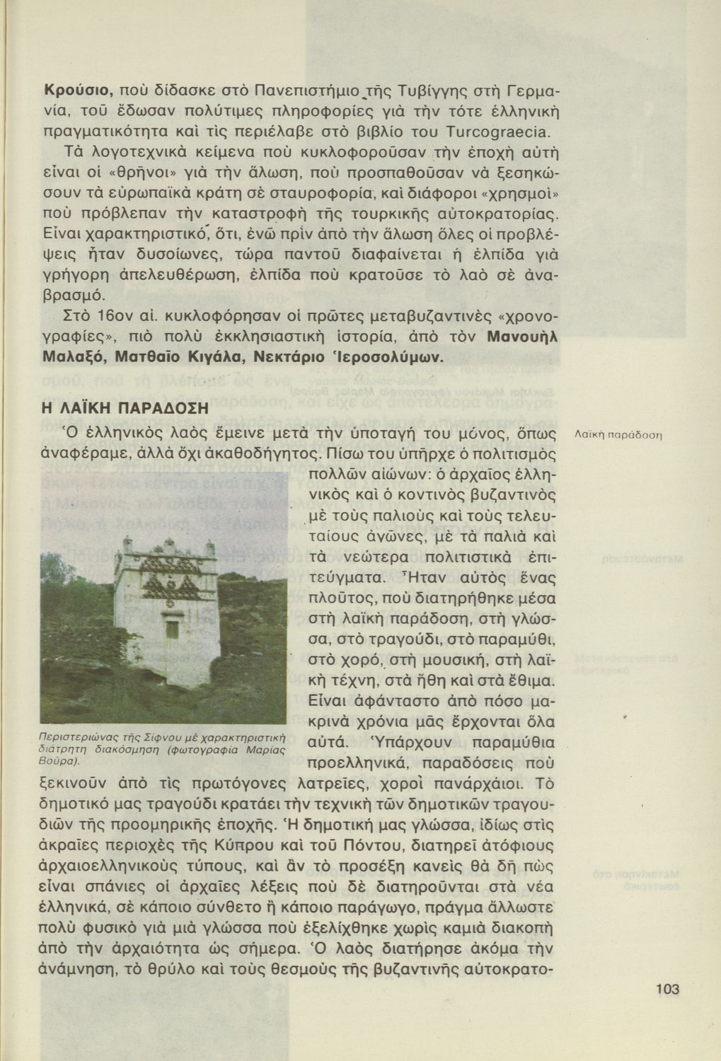 Σχολικό εγχειρίδιο Νέων Ελληνικών Γ΄ Γυμνασίου και Α' Αστικού Σχολείου που περιέχει πεζά και ποιήματα Ελλήνων συγγραφέων εμπνευσμένα από τη θρησκευτική και κοινωνική ζωή, την ελληνική μυθολογία, την αρχαία και