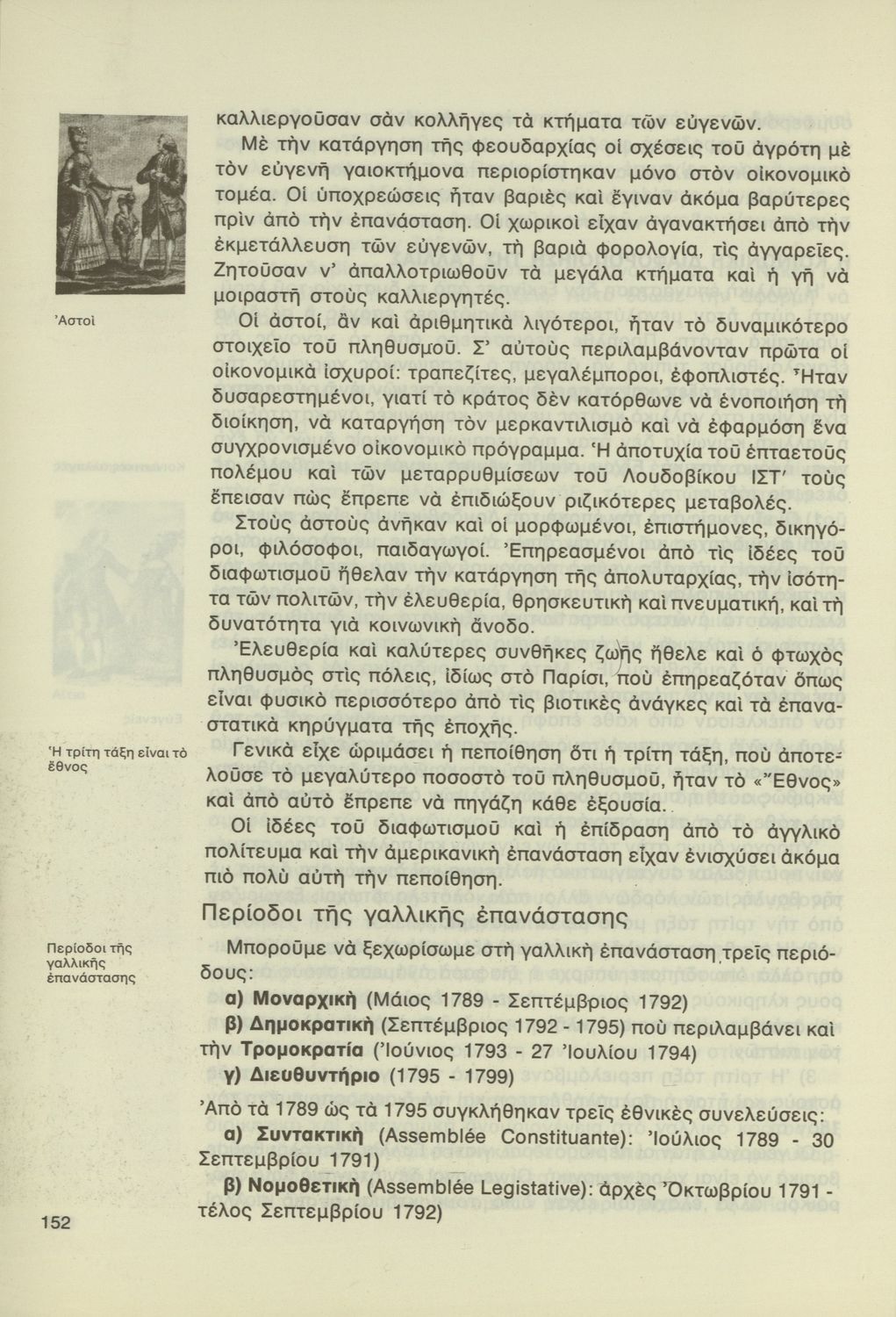 Σχολικό εγχειρίδιο της Γ΄ Γυμνασίου για το μάθημα της Ιστορίας. Αναφέρεται στα ιστορικά γεγονότα στην Ευρώπη την περίοδο της Αναγέννησης και του Διαφωτισμού και στη δημιουργία των εθνών κρατών. Έπειτα επικεντρώνεται στην ελληνική ιστορία, παρουσιάζοντας την Ελληνική Επανάσταση και τη διοίκηση του ελληνικού κράτους. Καλύπτει τα γεγονότα του Α΄ Παγκοσμίου Πολέμου και πολύ συνοπτικά αναφέρεται στον Β΄ Παγκόσμιο και τα μεταπολεμικά χρόνια. Στο τέλος περιλαμβάνει αποσπάσματα από πηγές.