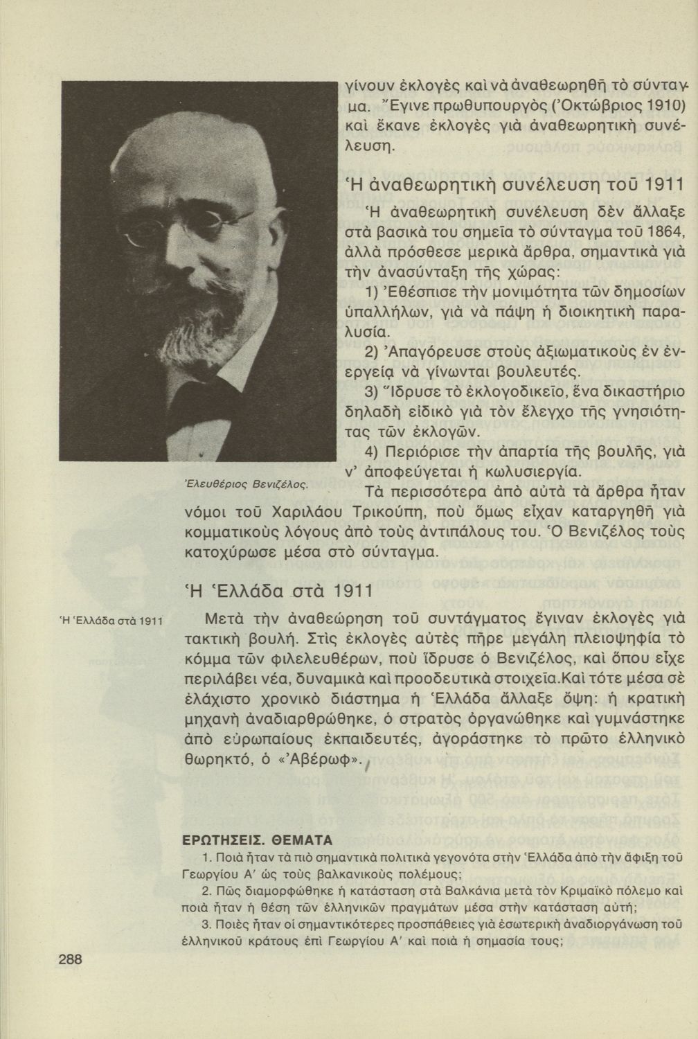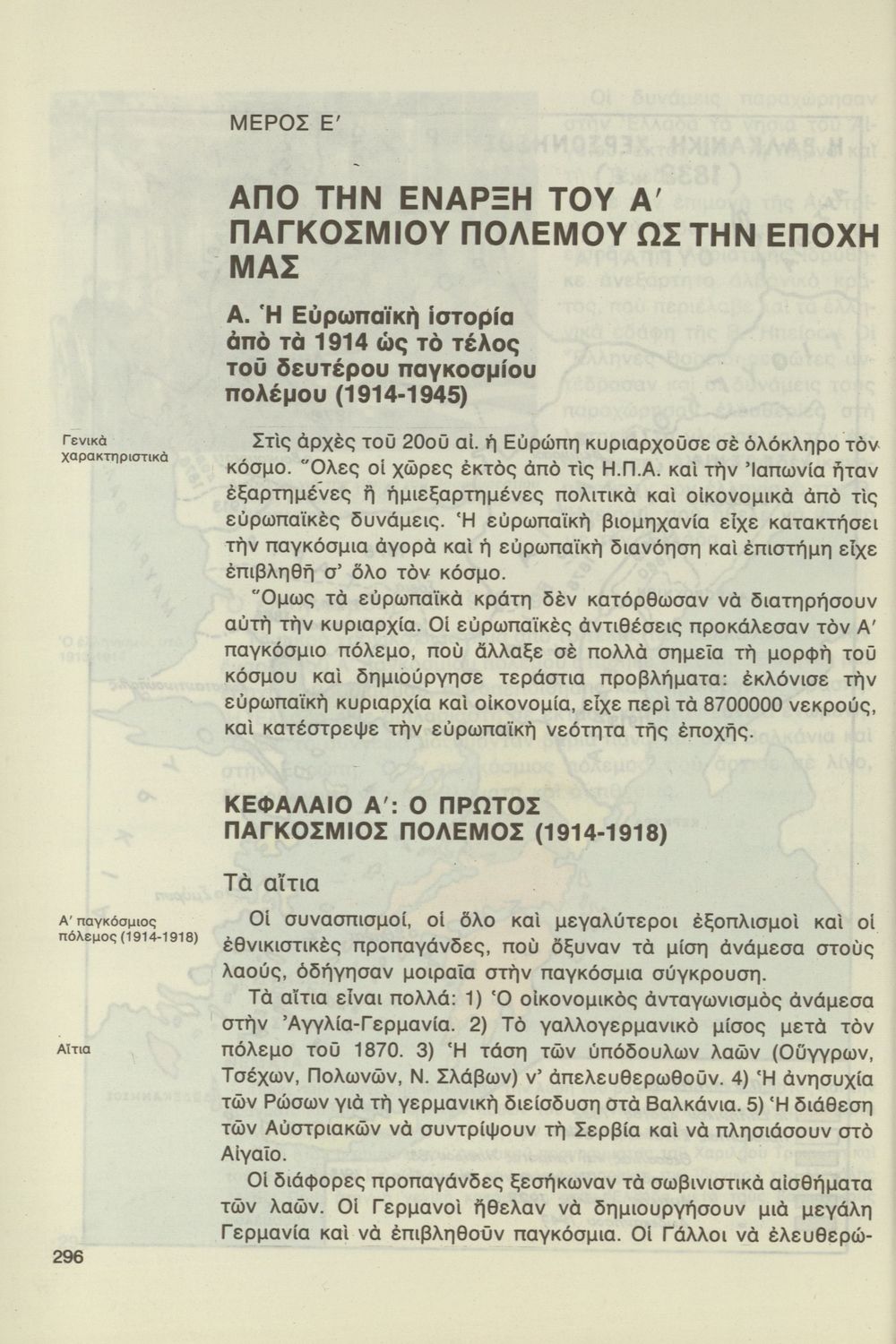 Σχολικό εγχειρίδιο της Γ΄ Γυμνασίου για το μάθημα της Ιστορίας. Αναφέρεται στα ιστορικά γεγονότα στην Ευρώπη την περίοδο της Αναγέννησης και του Διαφωτισμού και στη δημιουργία των εθνών κρατών. Έπειτα επικεντρώνεται στην ελληνική ιστορία, παρουσιάζοντας την Ελληνική Επανάσταση και τη διοίκηση του ελληνικού κράτους. Καλύπτει τα γεγονότα του Α΄ Παγκοσμίου Πολέμου και πολύ συνοπτικά αναφέρεται στον Β΄ Παγκόσμιο και τα μεταπολεμικά χρόνια. Στο τέλος περιλαμβάνει αποσπάσματα από πηγές.