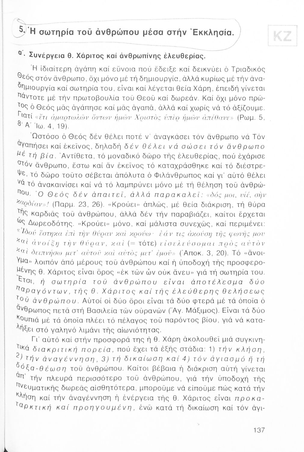 Βαθμίδα εκπαίδευσης: Δευτεροβάθμια Τάξη: Β' Λυκείου Μάθημα: Θρησκευτικά Γλώσσα: Δημοτική Παρουσίαση περιεχομένου: Σχολικό εγχειρίδιο Θρησκευτικών Β΄ Λυκείου που πραγματεύεται θέματα της επιστημονικής, φιλοσοφικής, ιστορικής και θρησκευτικής γνώσης και εστιάζει στην ορθόδοξη χριστιανική πίστη και λατρεία. Περιέχει και εκκλησιαστικούς ύμνους. |