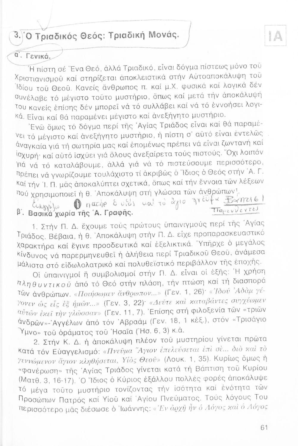 Βαθμίδα εκπαίδευσης: Δευτεροβάθμια Τάξη: Β' Λυκείου Μάθημα: Θρησκευτικά Γλώσσα: Δημοτική Παρουσίαση περιεχομένου: Σχολικό εγχειρίδιο Θρησκευτικών Β΄ Λυκείου που πραγματεύεται θέματα της επιστημονικής, φιλοσοφικής, ιστορικής και θρησκευτικής γνώσης και εστιάζει στην ορθόδοξη χριστιανική πίστη και λατρεία. Περιέχει και εκκλησιαστικούς ύμνους. |