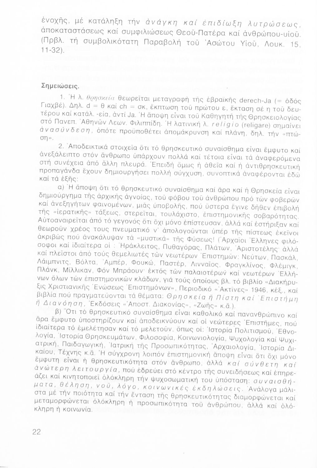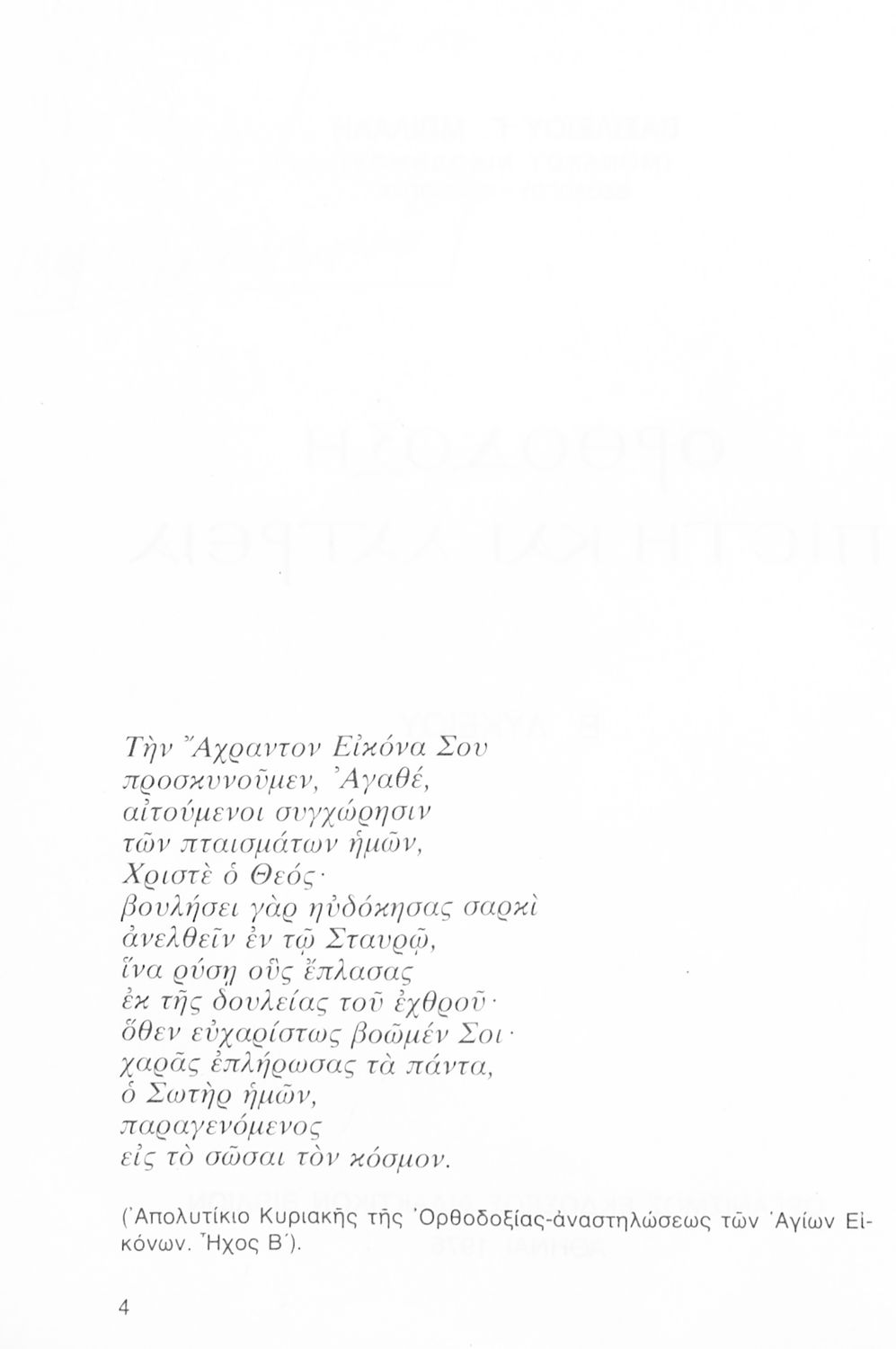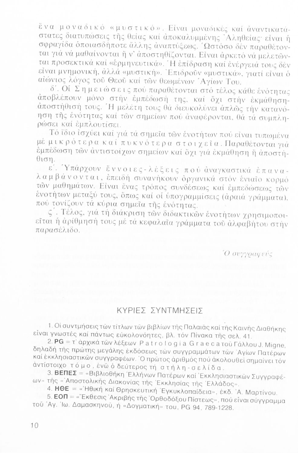 Σχολικό εγχειρίδιο Θρησκευτικών Β΄ Λυκείου που πραγματεύεται θέματα της επιστημονικής, φιλοσοφικής, ιστορικής και θρησκευτικής γνώσης και εστιάζει στην ορθόδοξη χριστιανική πίστη και λατρεία. Περιέχει και εκκλησιαστικούς ύμνους.