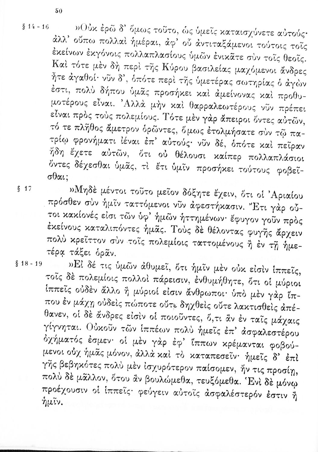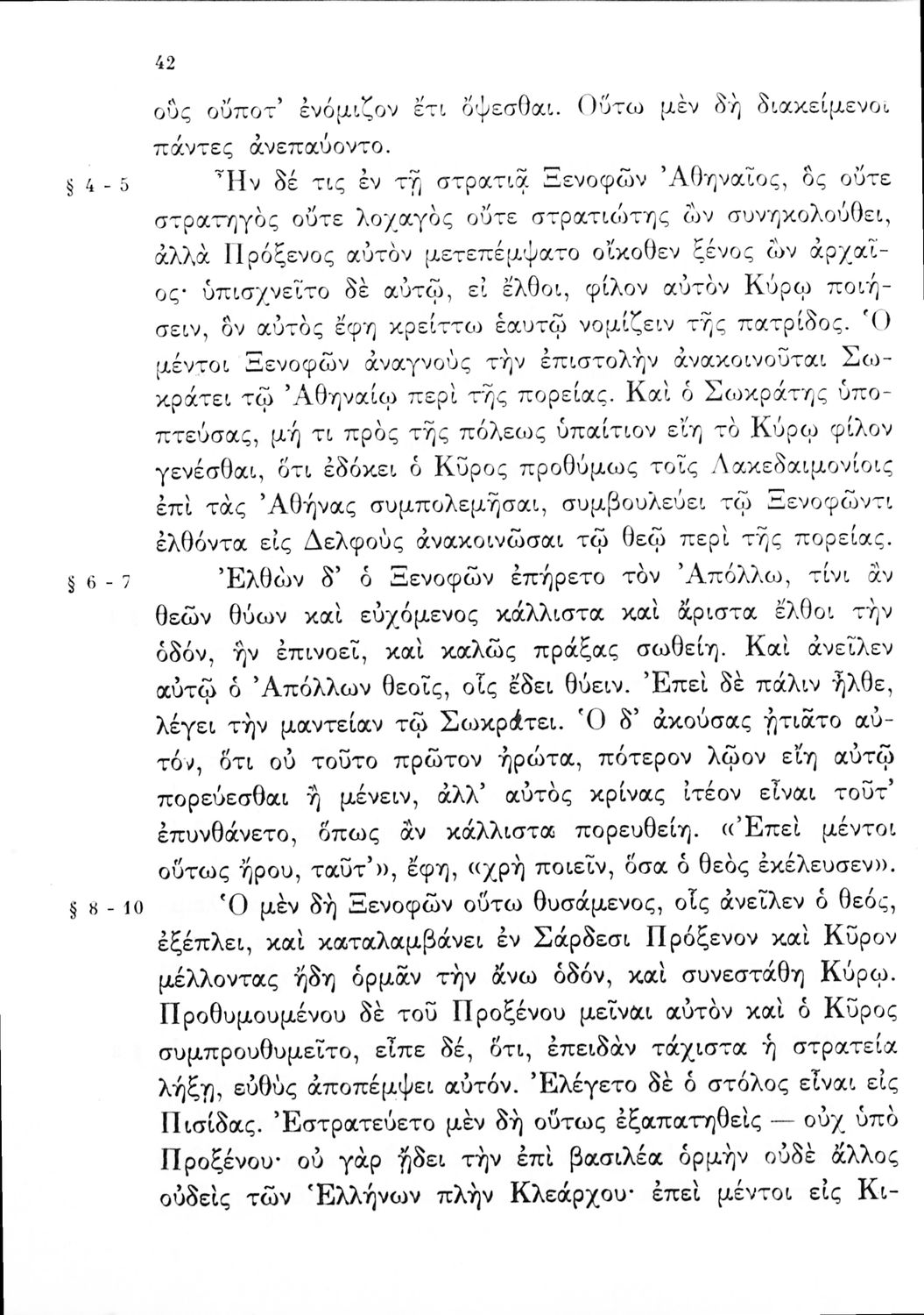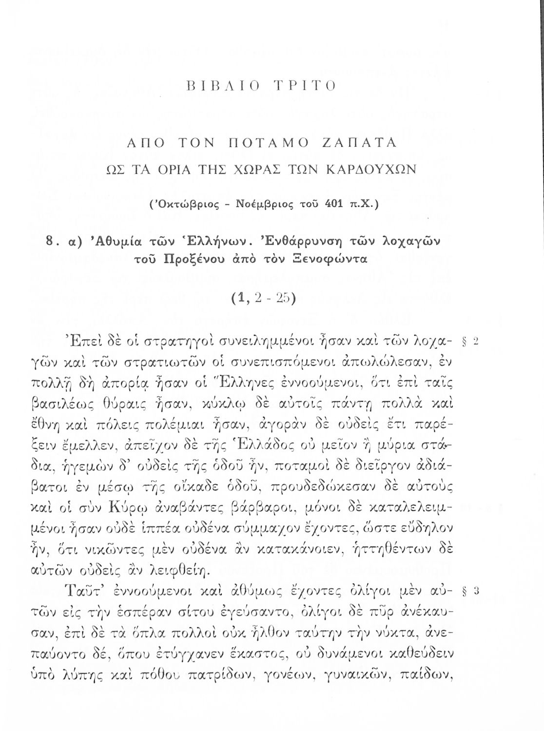 Σχολικό εγχειρίδιο της Β΄ Γυμνασίου για το μάθημα των Αρχαίων. Ήταν εγκεκριμένο για τη δεκαετία 1927-1937. Περιλαμβάνει το έργο του Ξενοφώντα Κύρου Ανάβασις και ερμηνευτικές και λεξιλογικές παρατηρήσεις.