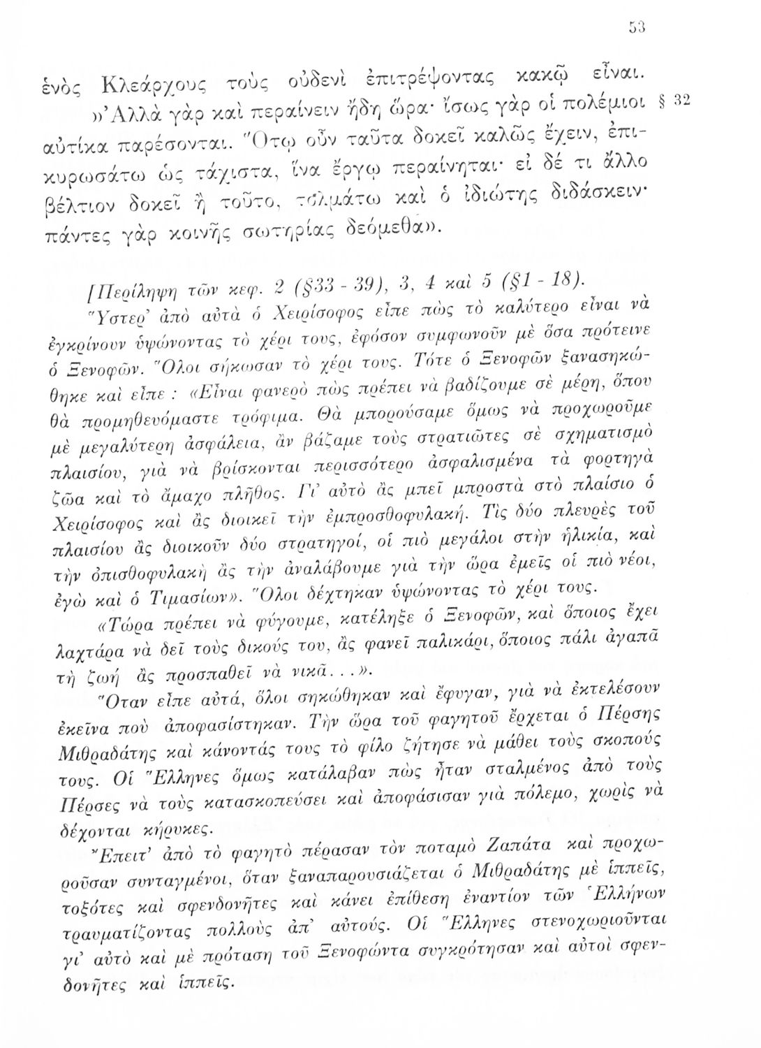Ξενοφών, Νικόλαος Ι. Ζαφειρίου (σχόλια)