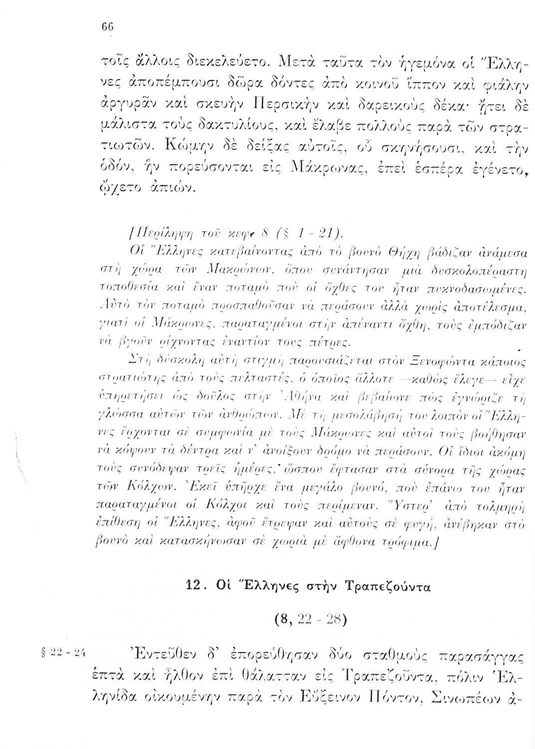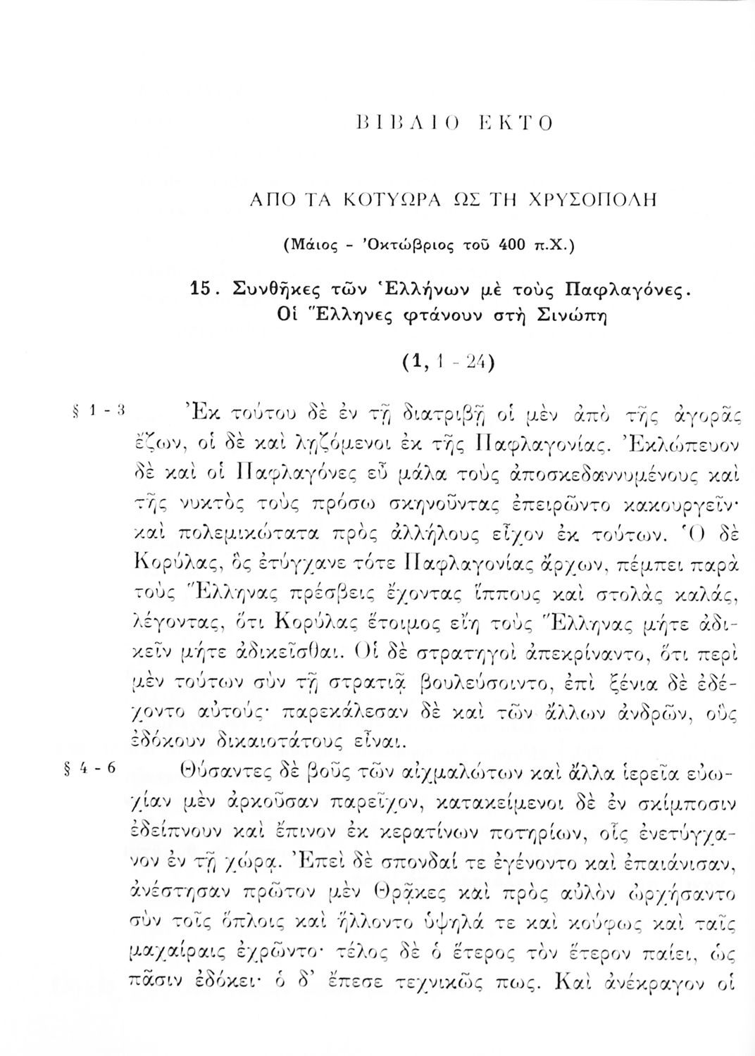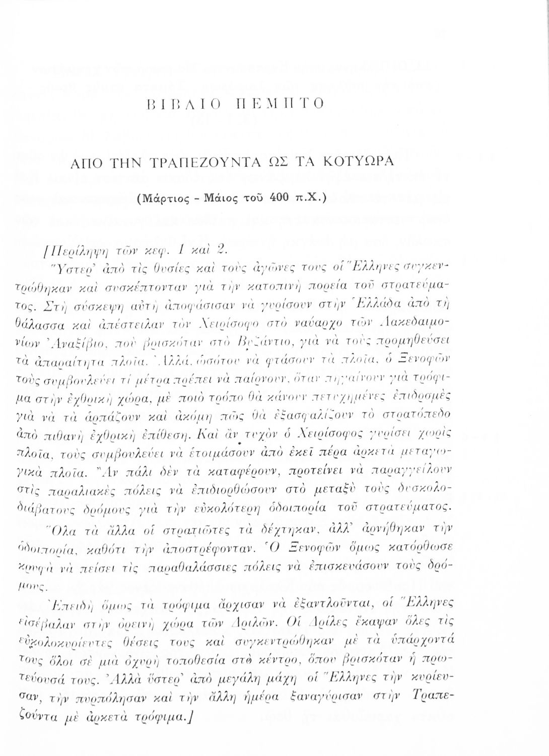 Σχολικό εγχειρίδιο της Β΄ Γυμνασίου για το μάθημα των Αρχαίων. Ήταν εγκεκριμένο για τη δεκαετία 1927-1937. Περιλαμβάνει το έργο του Ξενοφώντα Κύρου Ανάβασις και ερμηνευτικές και λεξιλογικές παρατηρήσεις.