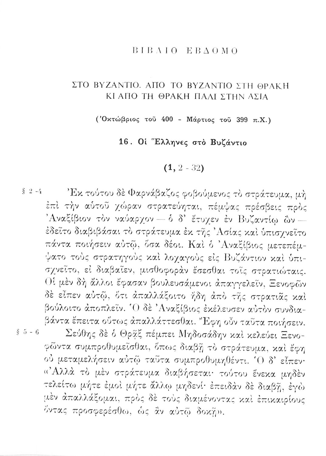Σχολικό εγχειρίδιο Αρχαίων Ελληνικών για τη Β΄ Γυμνασίου. Πρόκειται για βιβλίο αρχαίων σε μετάφραση από το έργο του Ξενοφώντα. Στο βιβλίο απεικονίζεται το σύμβολο της επταετίας.