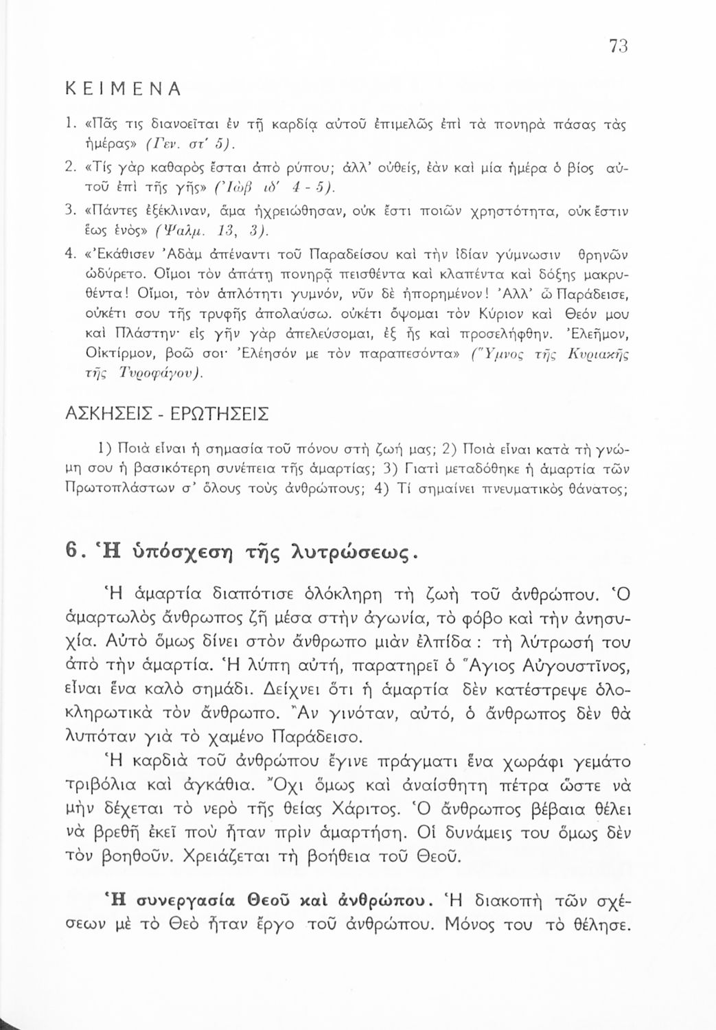 Σχολικό εγχειρίδιο Θρησκευτικών Ε' και ΣΤ΄ Γυμνασίου που αναλύει την έννοια της κατήχησης στις διάφορες θρησκείες με έμφαση στο ορθόδοξο χριστιανικό δόγμα, το οποίο εξετάζει από δογματική και ηθική σκοπιά. ...