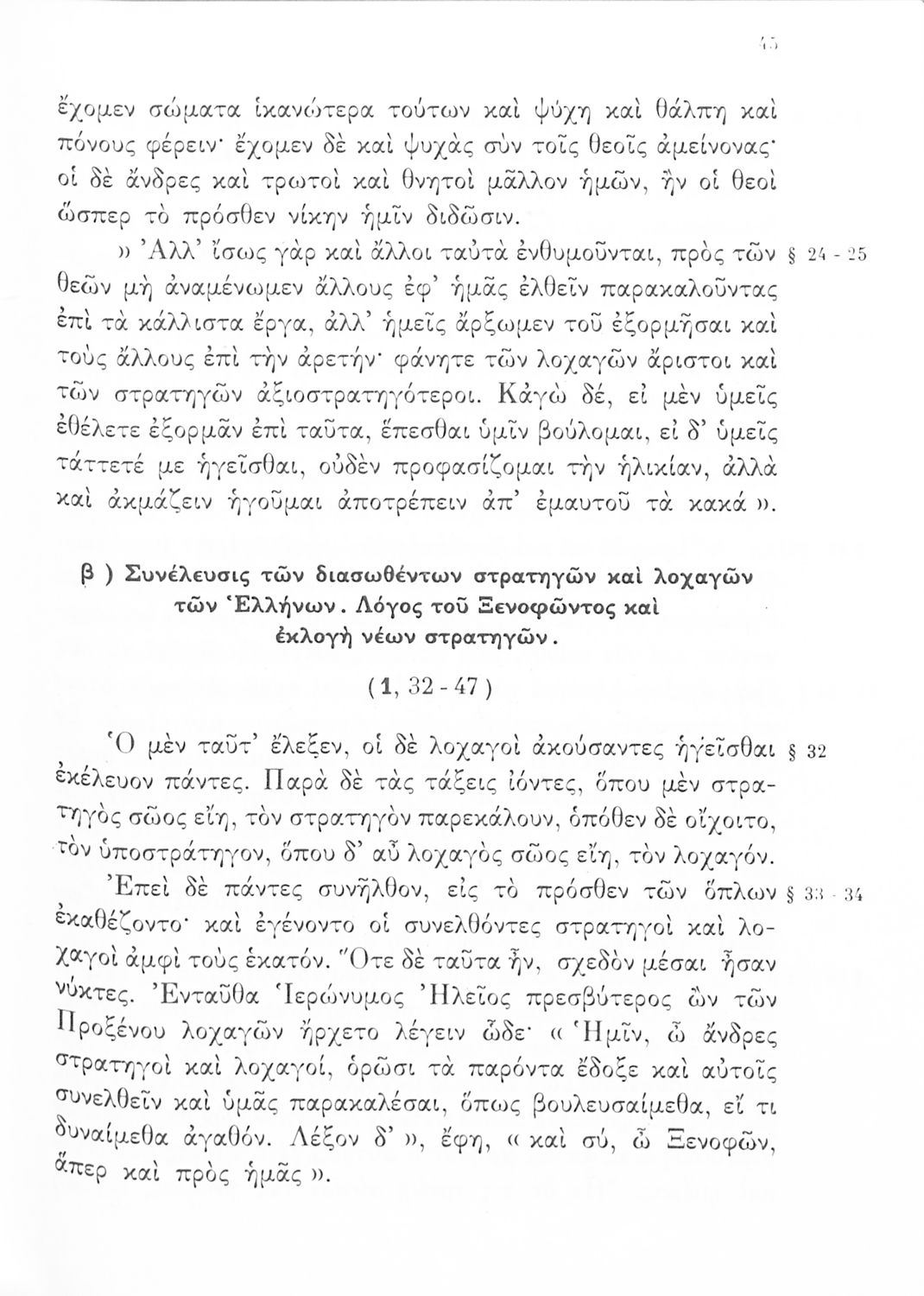 Ξενοφώντος Κύρου Ανάβασις, (εκλογαί), Β΄ Γυμνασίου