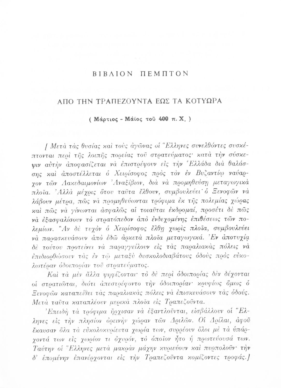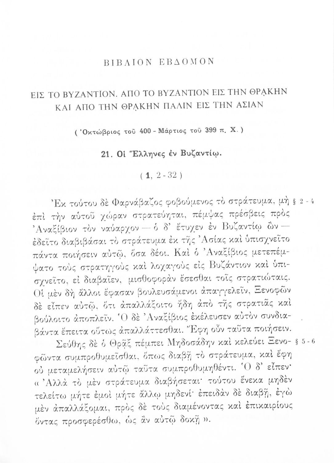 Σχολικό εγχειρίδιο Αρχαίων Ελληνικών Β΄ Γυμνασίου που περιλαμβάνει το έργο του Ξενοφώντα Κύρου Ανάβασις, εισαγωγικά σχόλια για τη ζωή και το έργο του, ερμηνευτικές και γραμματικές παρατηρήσεις.