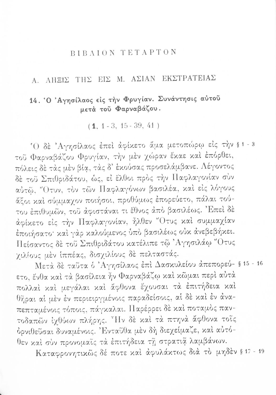 Σχολικό εγχειρίδιο Αρχαίων Ελληνικών το οποίο περιλαμβάνει το έργο του Ξενοφώντα 'Ελληνικά' συνοδευόμενο από εισαγωγικά σχόλια για τη ζωή και το έργο του καθώς και ερμηνευτικές και γραμματικές σημειώσεις.