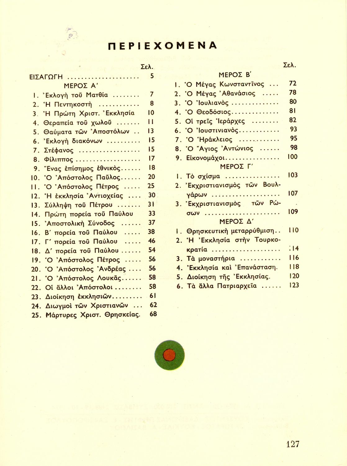 Σχολικό εγχειρίδιο Θρησκευτικών Ε΄ Δημοτικού που περιέχει την ιστορία της Ορθόδοξης Εκκλησίας από την ίδρυσή της μέχρι την δημιουργία της Εκκλησίας της Ελλάδας.