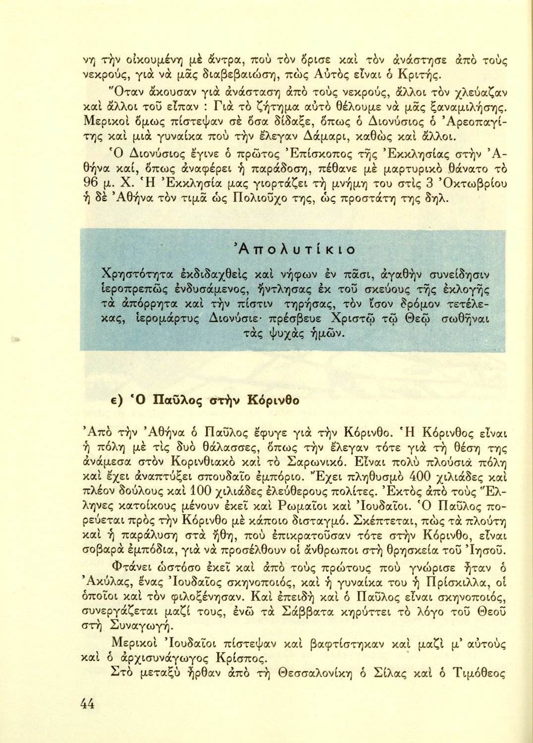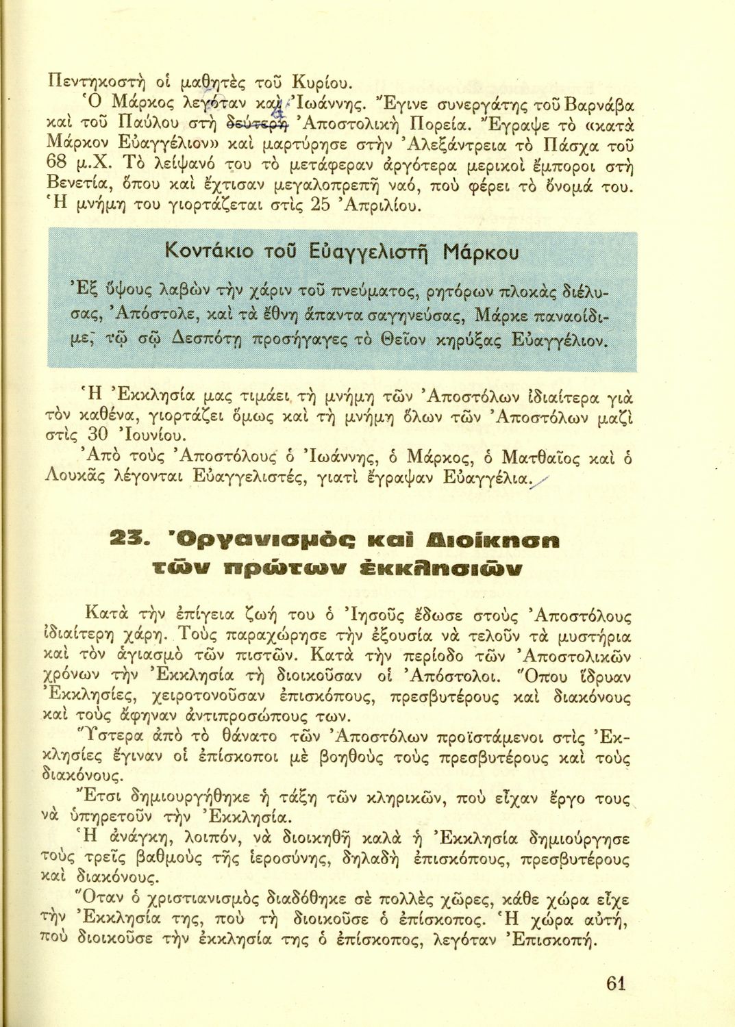 Σχολικό εγχειρίδιο Θρησκευτικών Ε΄ Δημοτικού που περιέχει την ιστορία της Ορθόδοξης Εκκλησίας από την ίδρυσή της μέχρι την δημιουργία της Εκκλησίας της Ελλάδας.
