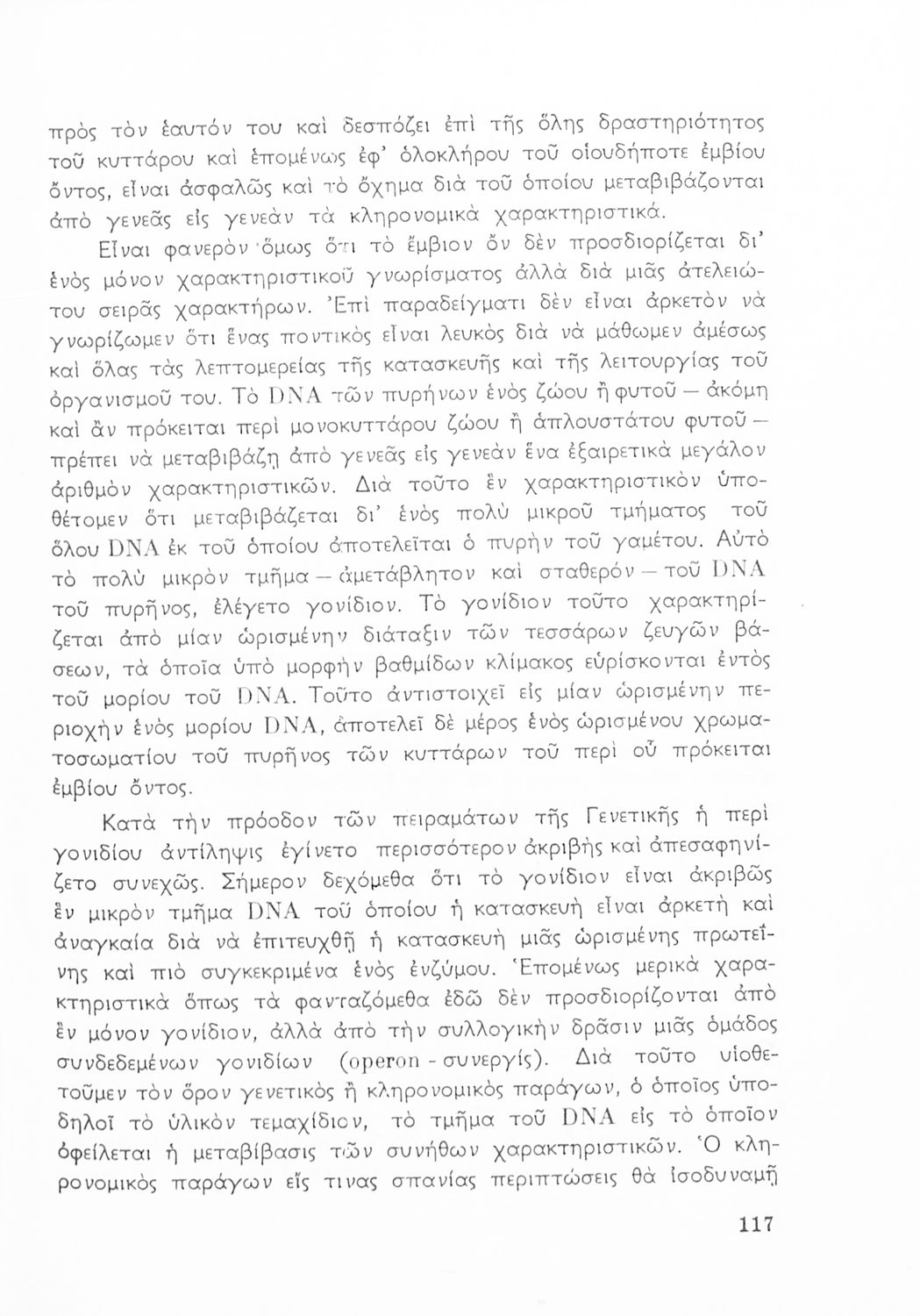 Σχολικό εγχειρίδιο Βιολογίας Δ΄ Γυμνασίου που εστιάζει στις συνθήκες γέννησης, μεταβολής και θανάτου των έμβιων οργανισμών. Ο συγγραφέας ήταν καθηγητής της γενικής Βιολογίας στο Πανεπιστήμιο Αθηνών.