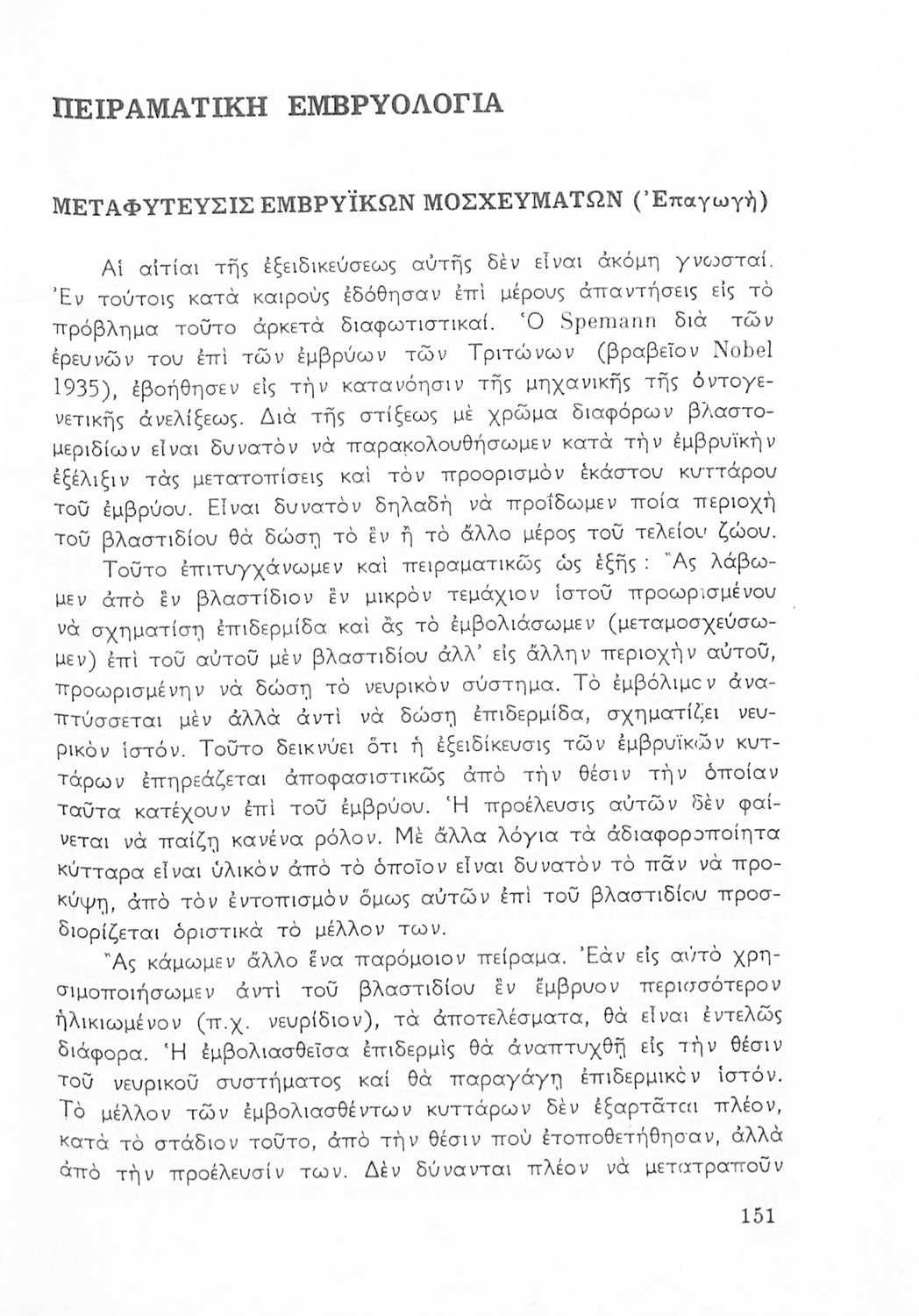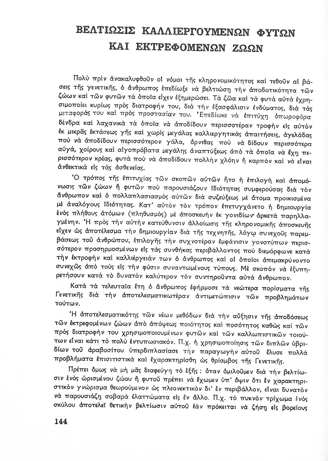 Σχολικό εγχειρίδιο Βιολογίας Δ΄ Γυμνασίου που εστιάζει στις συνθήκες γέννησης, μεταβολής και θανάτου των έμβιων οργανισμών. Ο συγγραφέας ήταν καθηγητής της γενικής Βιολογίας στο Πανεπιστήμιο Αθηνών.