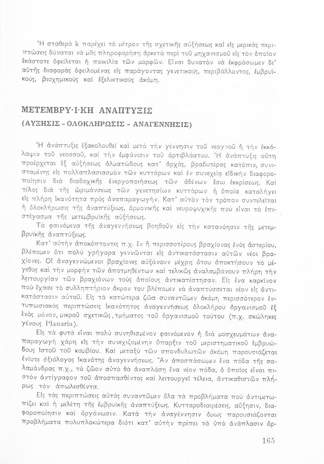 Σχολικό εγχειρίδιο Βιολογίας Δ΄ Γυμνασίου που εστιάζει στις συνθήκες γέννησης, μεταβολής και θανάτου των έμβιων οργανισμών. Ο συγγραφέας ήταν καθηγητής της γενικής Βιολογίας στο Πανεπιστήμιο Αθηνών.