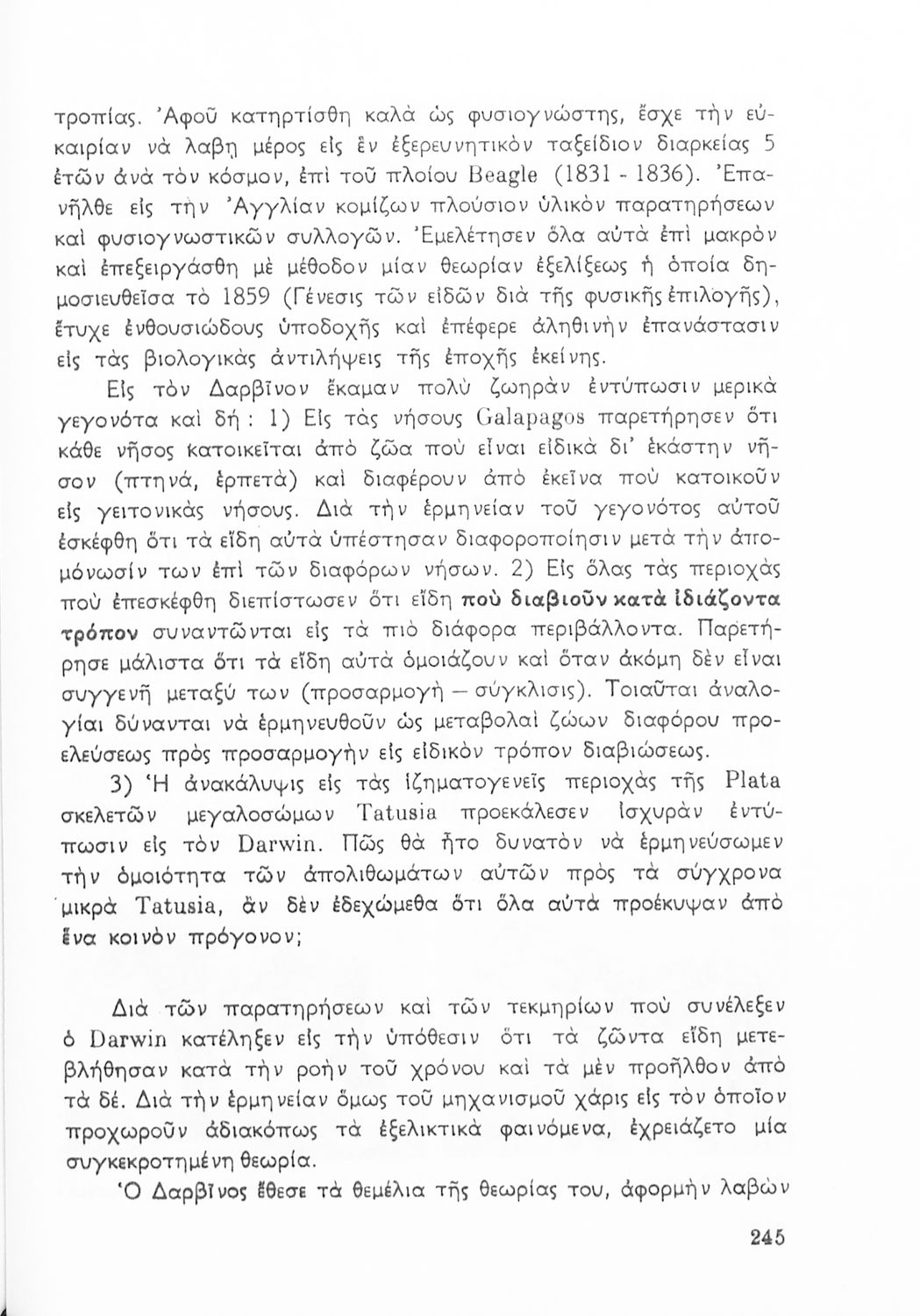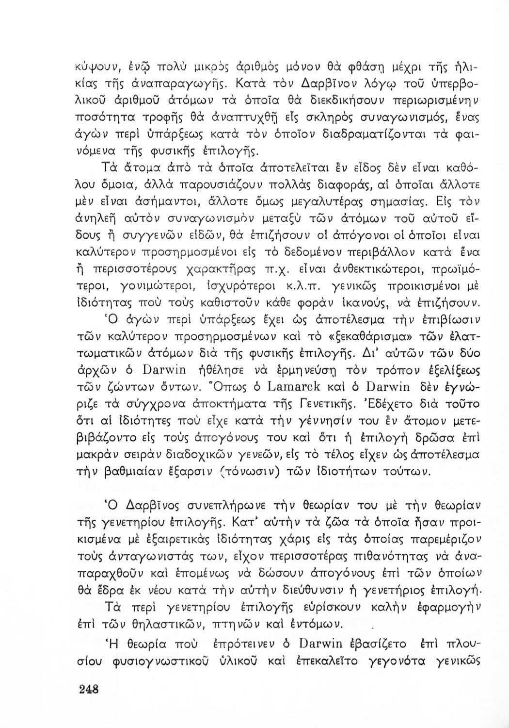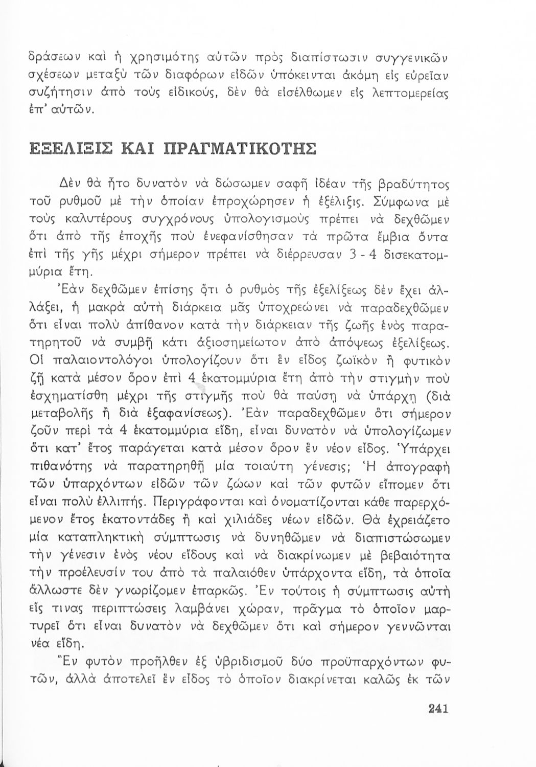 Σχολικό εγχειρίδιο Βιολογίας Δ΄ Γυμνασίου που εστιάζει στις συνθήκες γέννησης, μεταβολής και θανάτου των έμβιων οργανισμών. Ο συγγραφέας ήταν καθηγητής της γενικής Βιολογίας στο Πανεπιστήμιο Αθηνών.