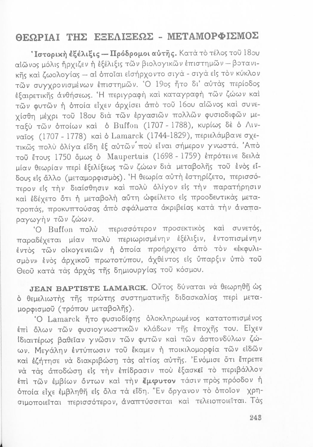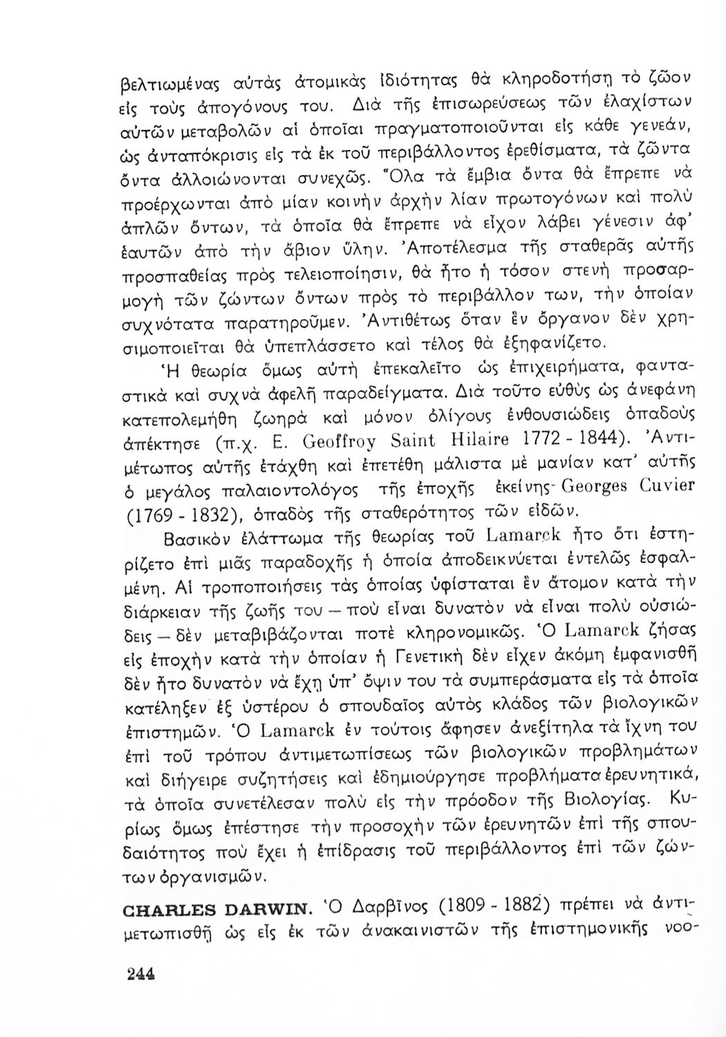 Σχολικό εγχειρίδιο Βιολογίας ΣΤ΄ Γυμνασίου που εστιάζει στις συνθήκες γέννησης, μεταβολής και θανάτου των έμβιων οργανισμών. Ο συγγραφέας ήταν υφηγητής του Πανεπιστημίου Αθηνών.