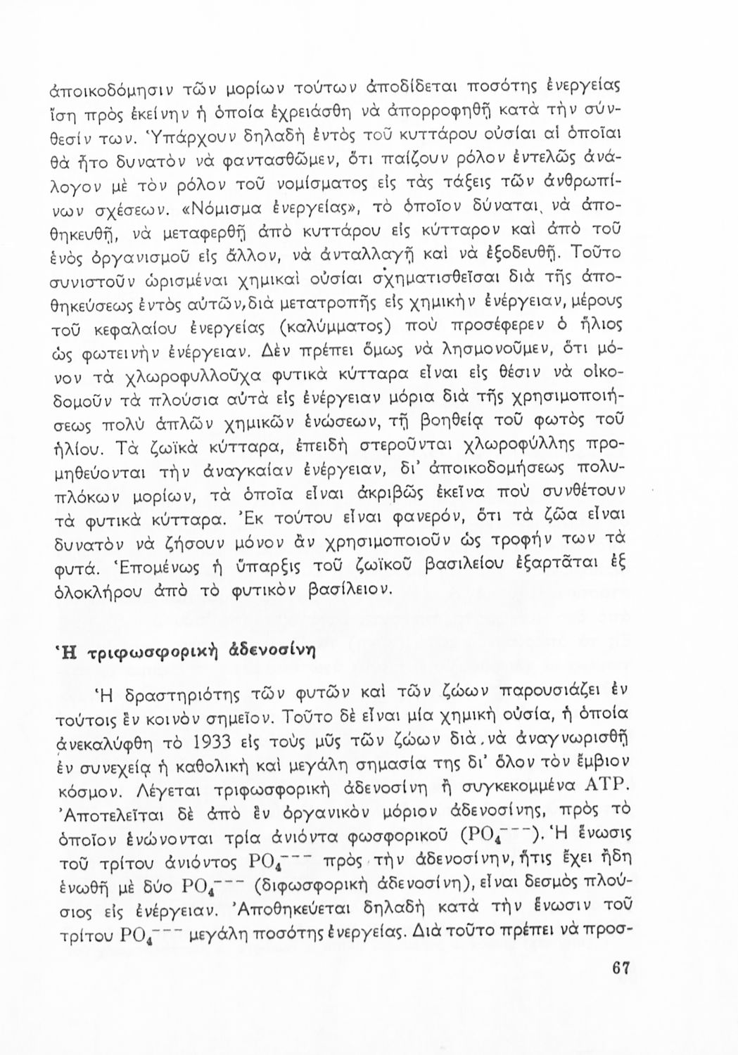 Σχολικό εγχειρίδιο Βιολογίας Δ΄ Γυμνασίου που εστιάζει στις συνθήκες γέννησης, μεταβολής και θανάτου των έμβιων οργανισμών. Ο συγγραφέας ήταν καθηγητής της γενικής Βιολογίας στο Πανεπιστήμιο Αθηνών.