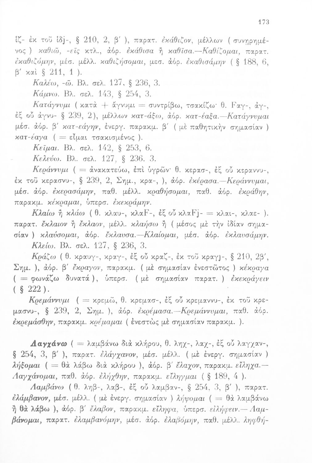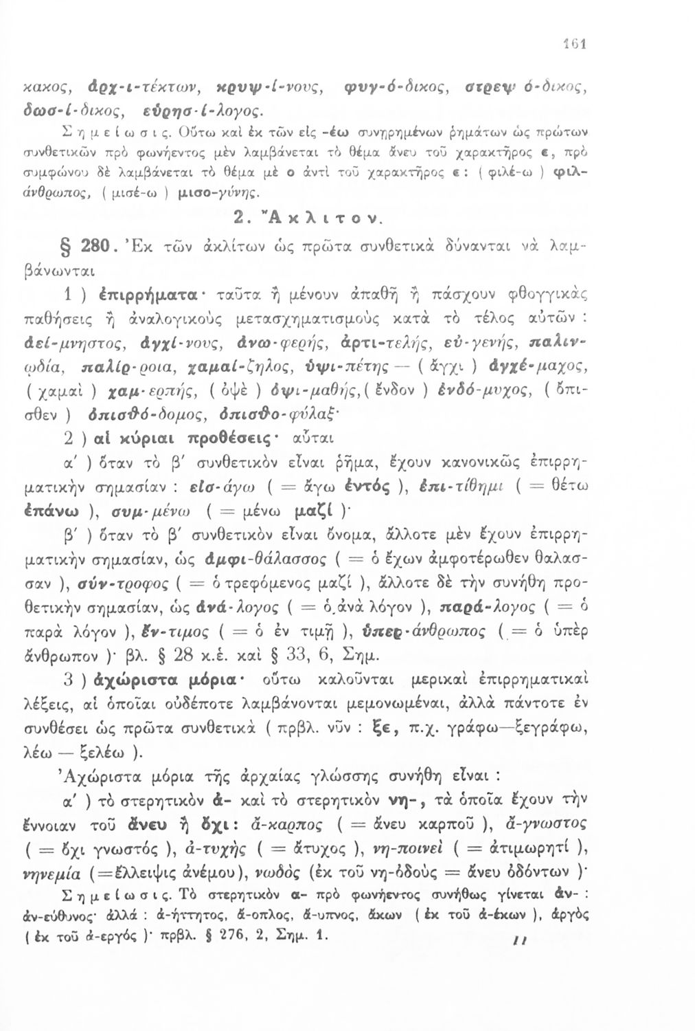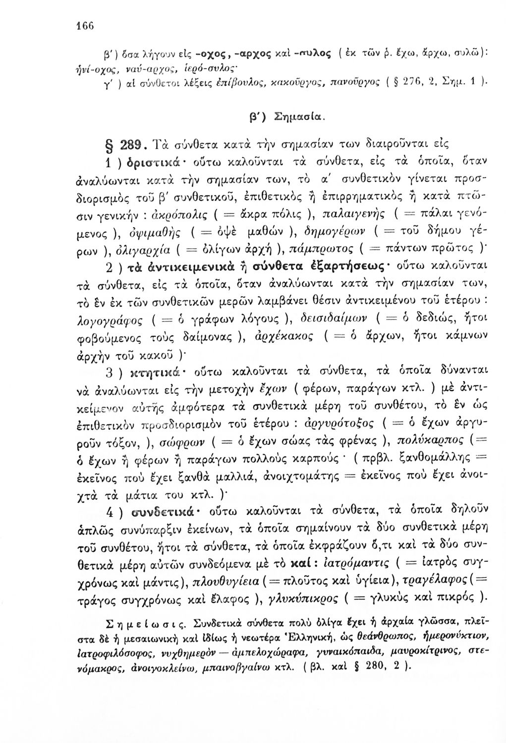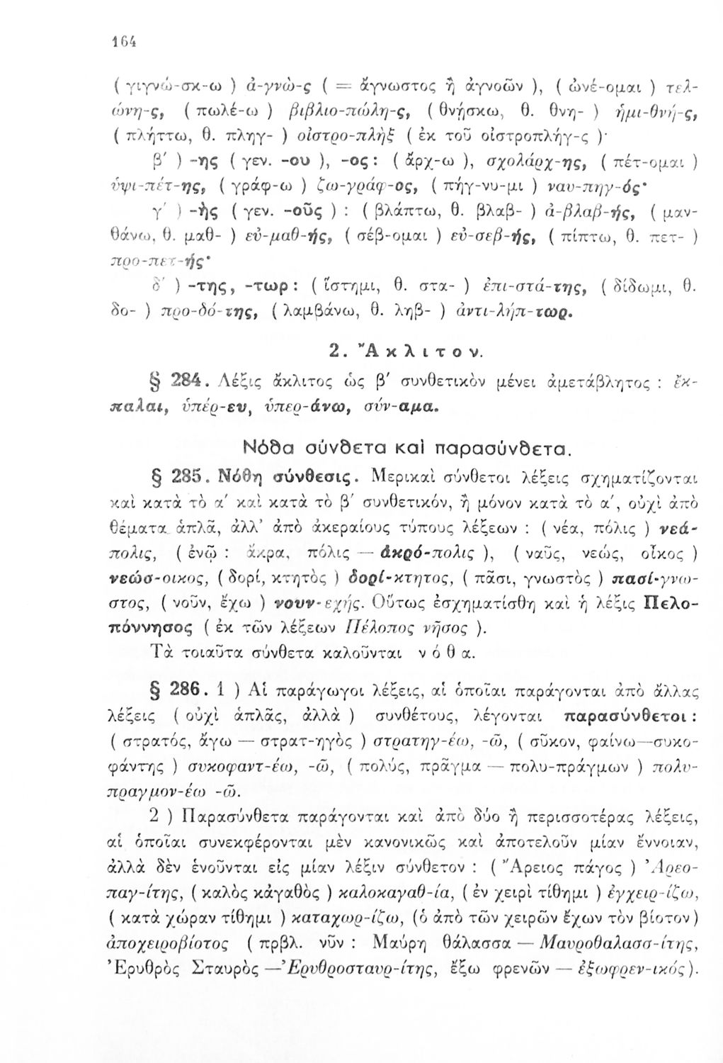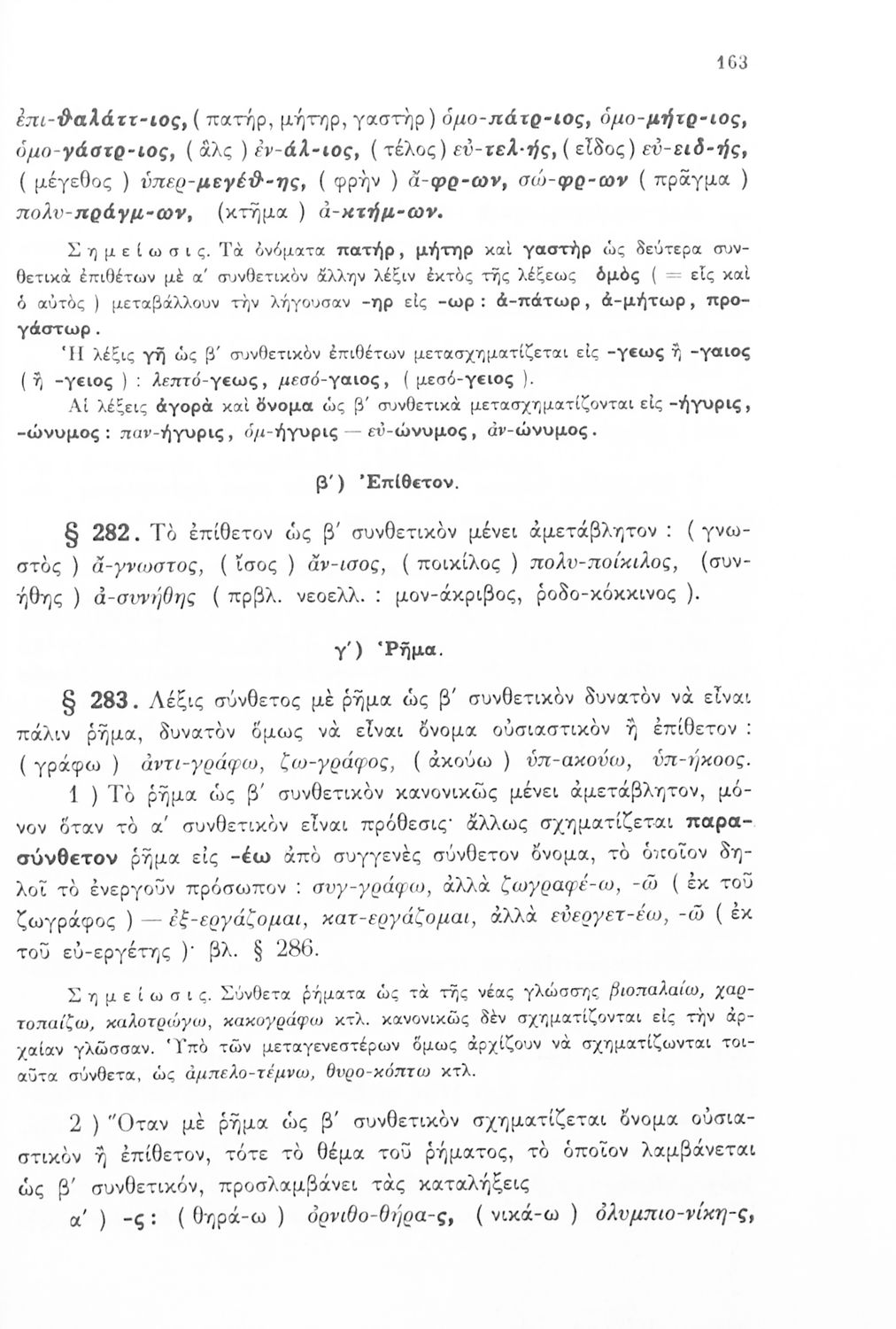 Γραμματική Αρχαίων Ελληνικών της Α΄, Β΄, Γ΄ και Δ΄ Γυμνασίου το οποίο εστιάζει στα μέρη του λόγου και στην σύνταξή τους και είναι χωρισμένο σε φθογγολογικό και τυπολογικό μέρος.