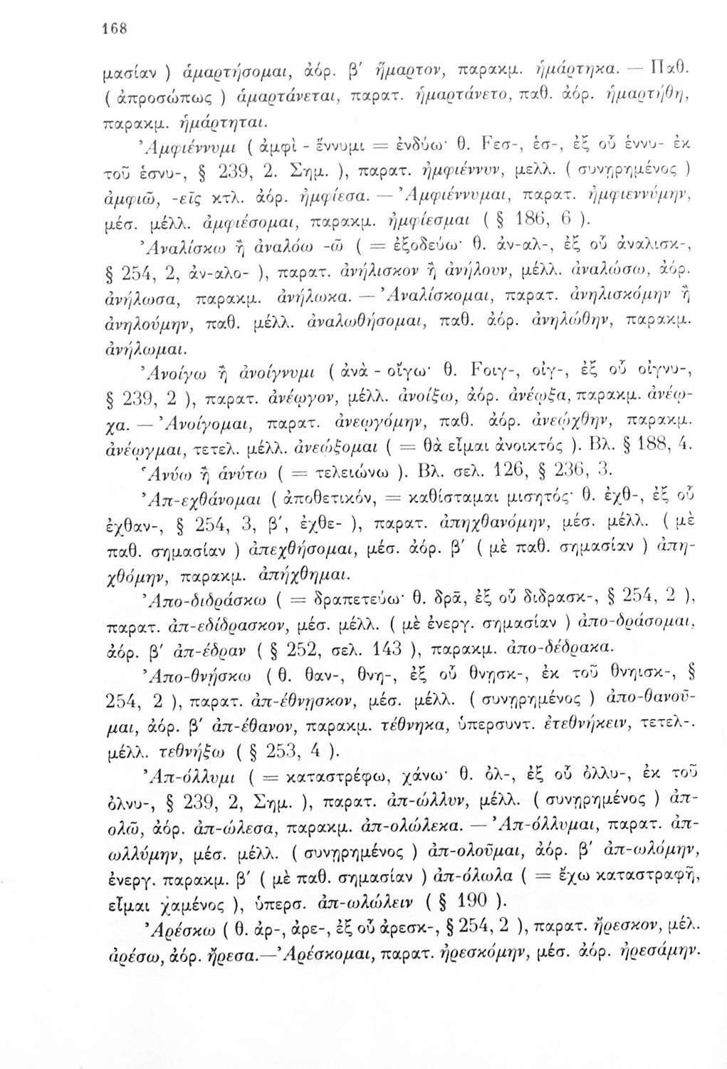 Σχολικό εγχειρίδιο Αρχαίων Ελληνικών για τις Α΄, Β΄ και Γ' Ελληνικού Σχολείου που περιλαμβάνει τη γραμματική της αρχαίας ελληνικής, πίνακα ανωμάλων ρημάτων και αρχικών χρόνων και ασκήσεις.