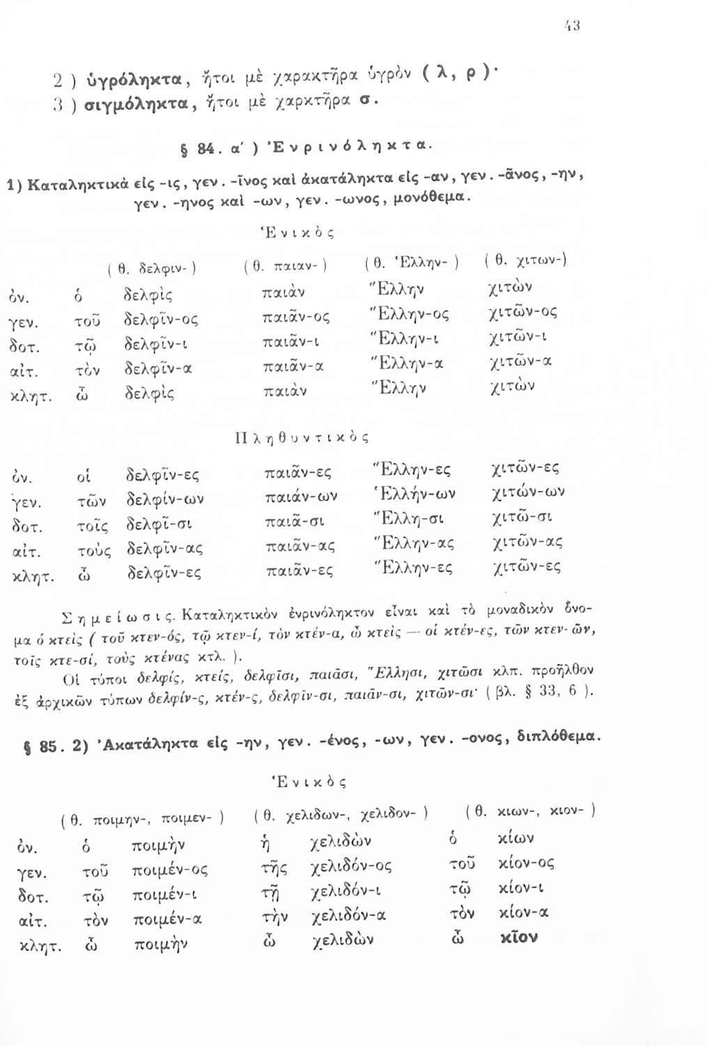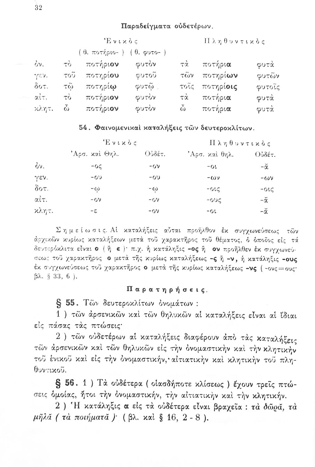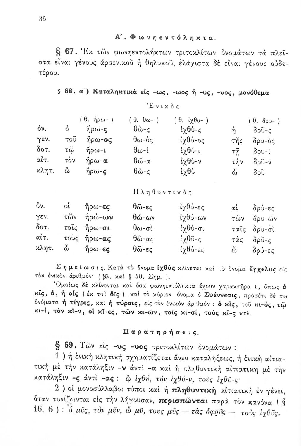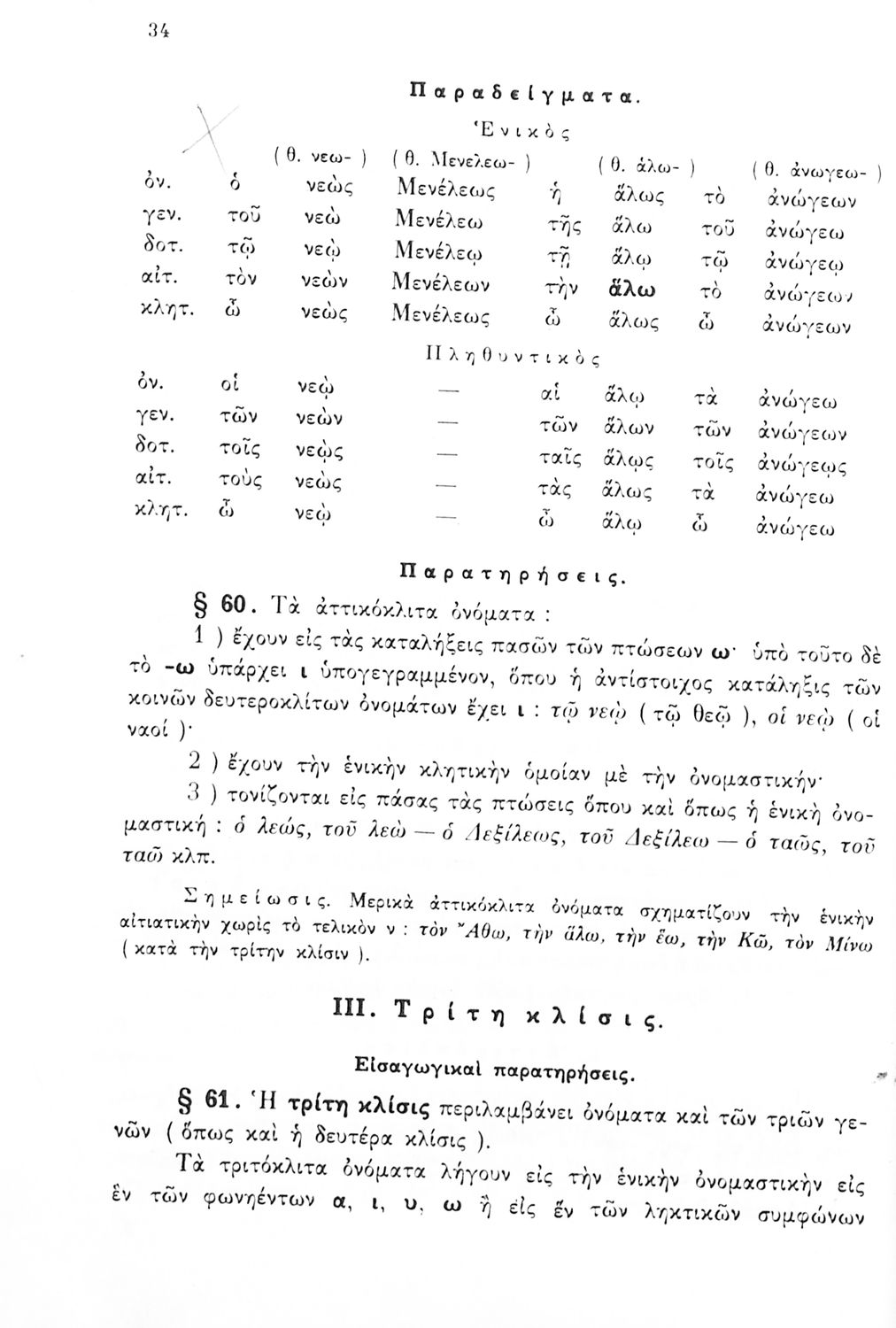 Σχολικό εγχειρίδιο Αρχαίων Ελληνικών Γ΄ Γυμνασίου που περιέχει τους κανόνες γραμματικής και είναι χωρισμένο σε φθογγολογικό, τυπολογικό και ετυμολογικό μέρος. Περιέχει και κατάλογο ανωμάλων ρημάτων.