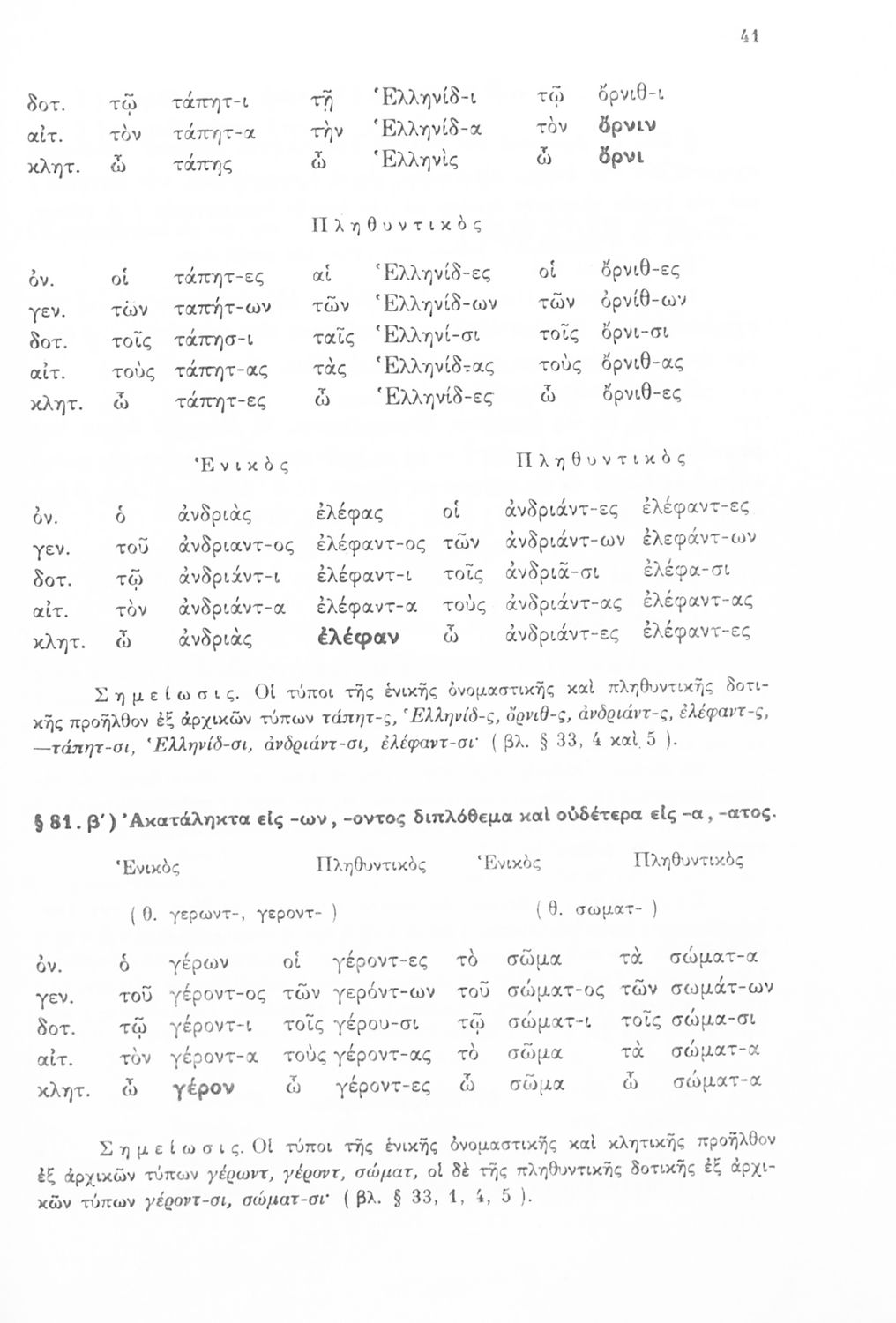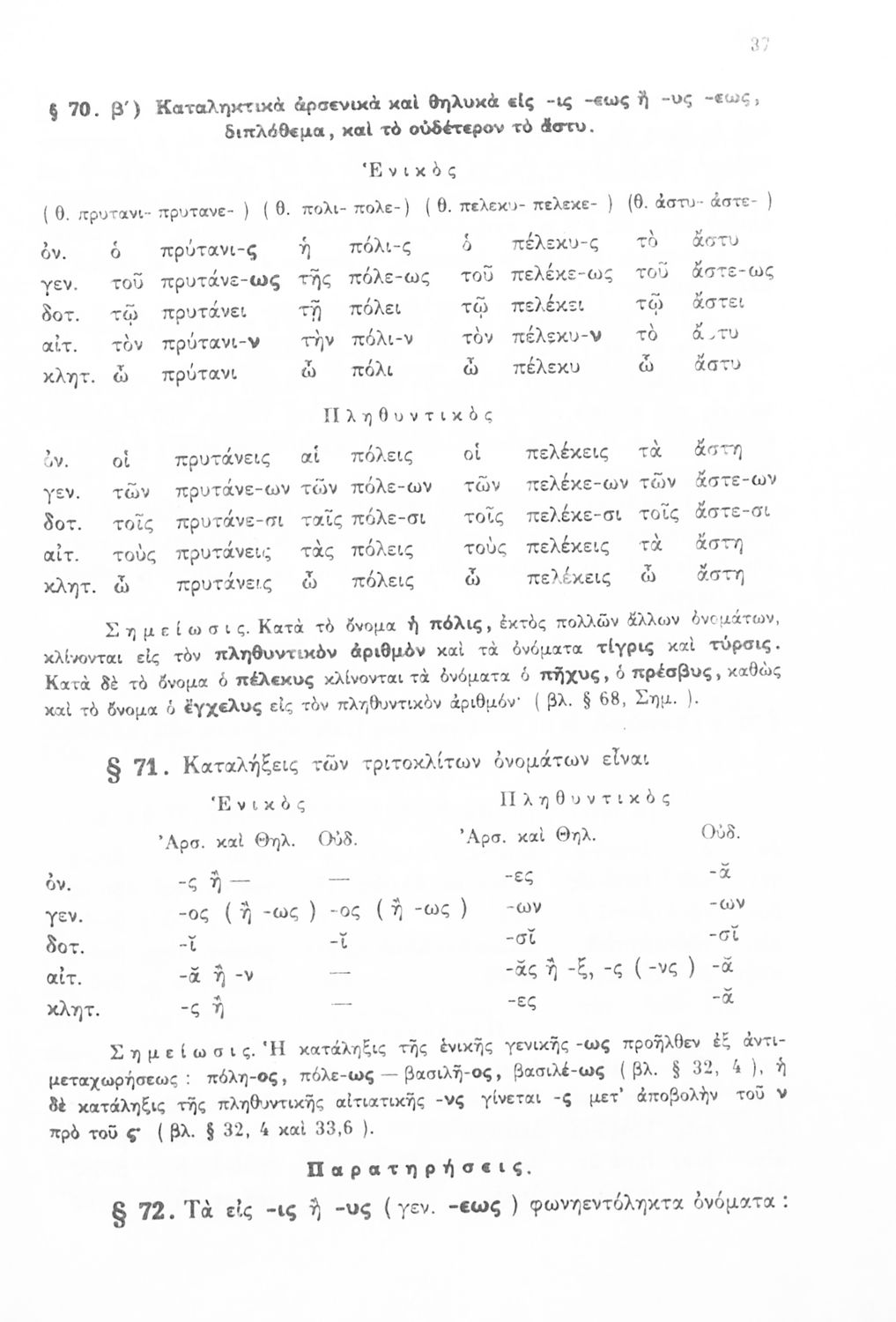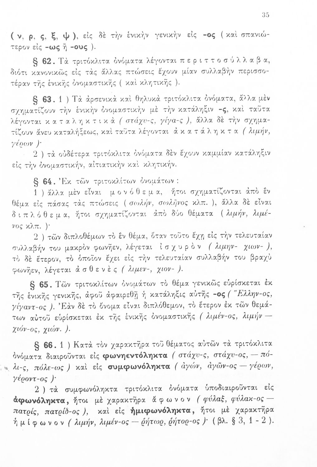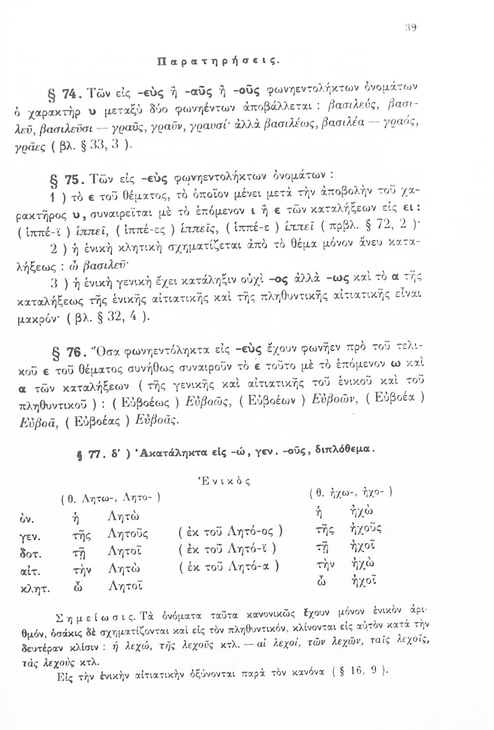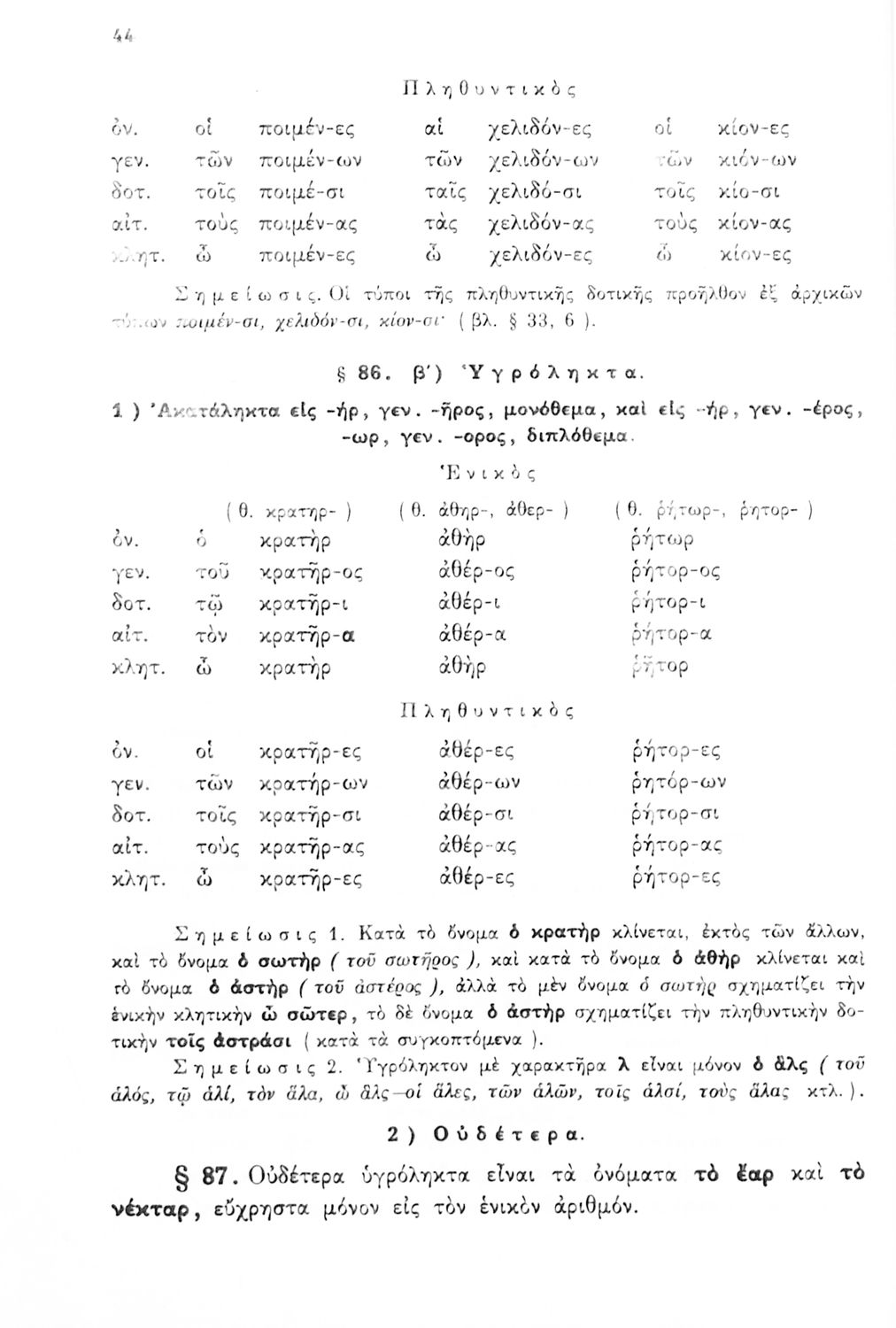 Σχολικό εγχειρίδιο Αρχαίων Ελληνικών Γ΄ Γυμνασίου που περιέχει τους κανόνες γραμματικής και είναι χωρισμένο σε φθογγολογικό, τυπολογικό και ετυμολογικό μέρος. Περιέχει και κατάλογο ανωμάλων ρημάτων.