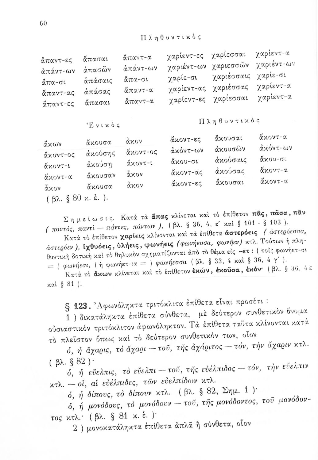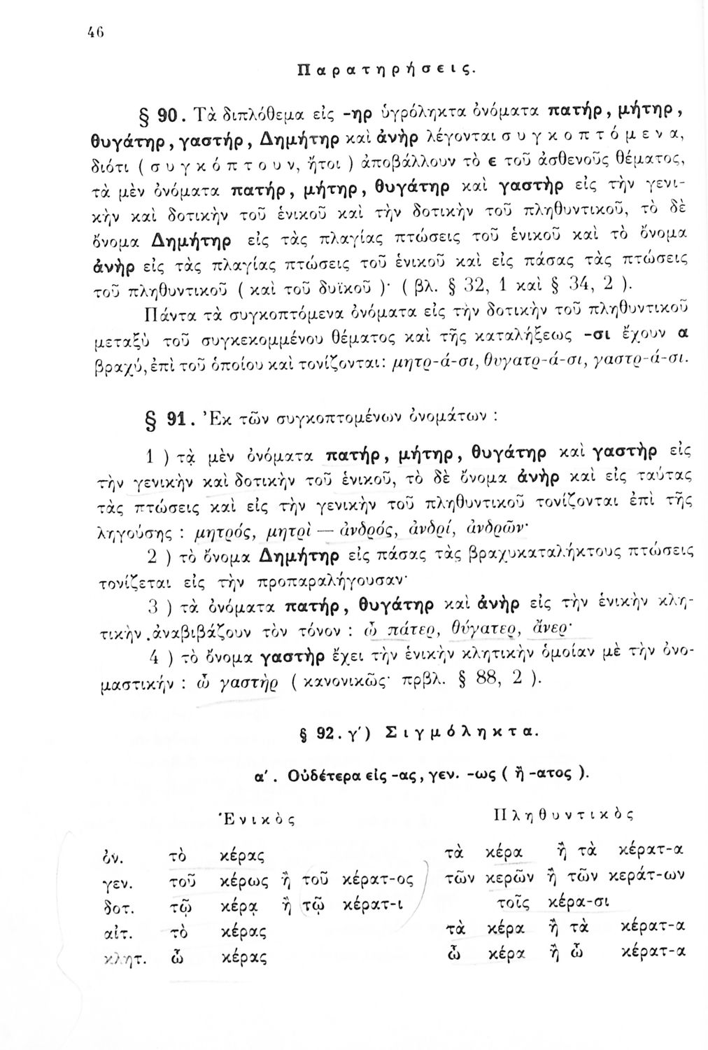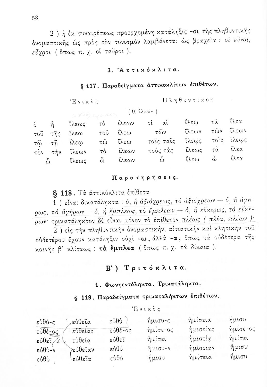 Σχολικό εγχειρίδιο Αρχαίων Ελληνικών Γ΄ Γυμνασίου που περιέχει τους κανόνες γραμματικής και είναι χωρισμένο σε φθογγολογικό, τυπολογικό και ετυμολογικό μέρος. Περιέχει και κατάλογο ανωμάλων ρημάτων.