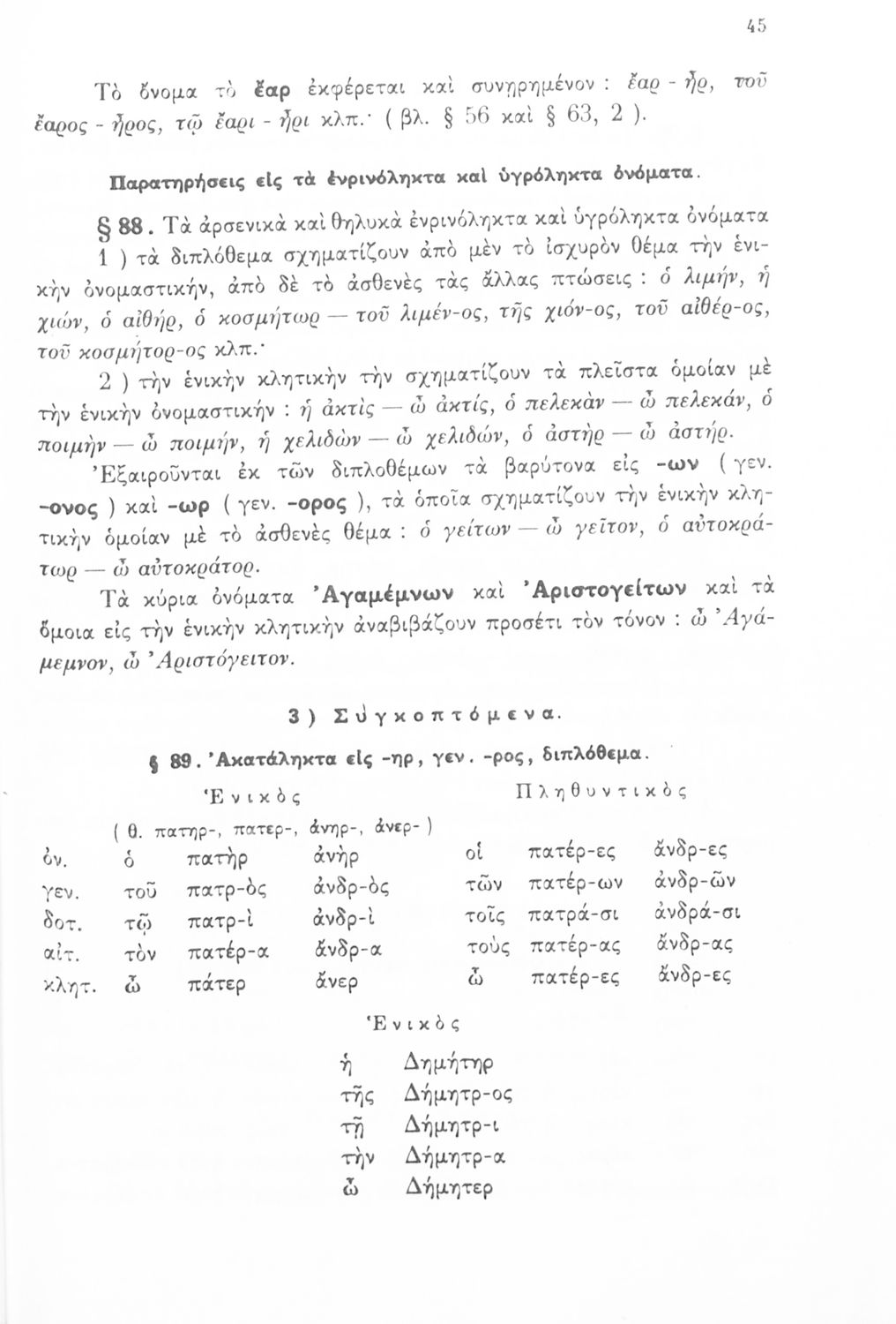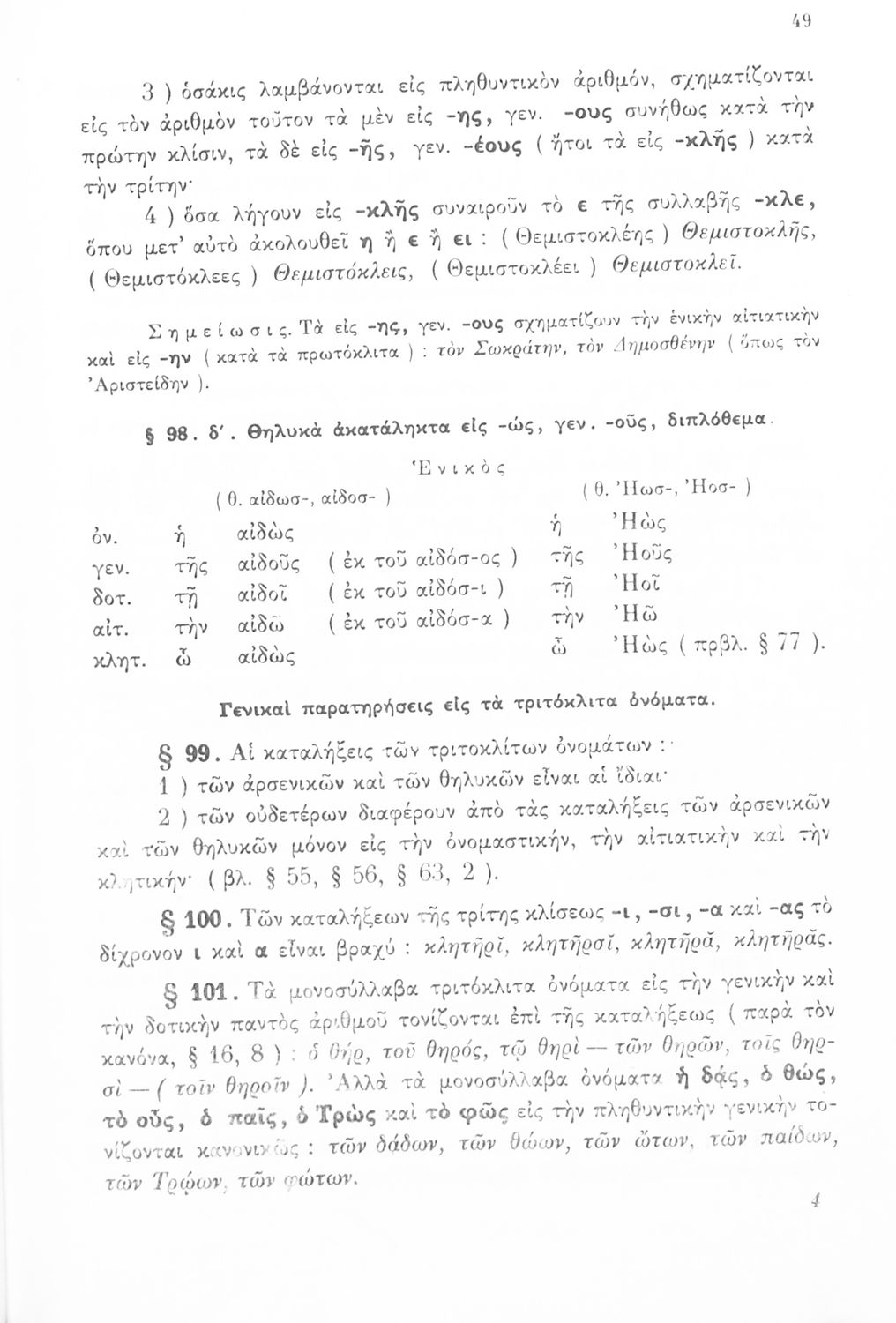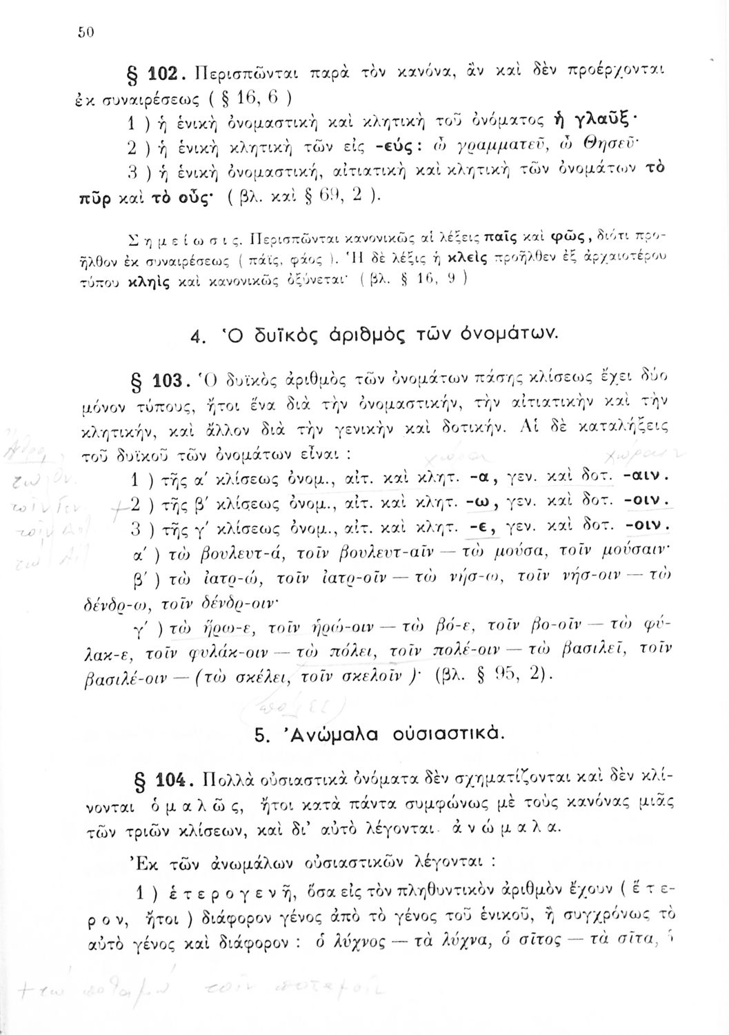 Σχολικό εγχειρίδιο Αρχαίων Ελληνικών Γ΄ Γυμνασίου που περιέχει τους κανόνες γραμματικής και είναι χωρισμένο σε φθογγολογικό, τυπολογικό και ετυμολογικό μέρος. Περιέχει και κατάλογο ανωμάλων ρημάτων.