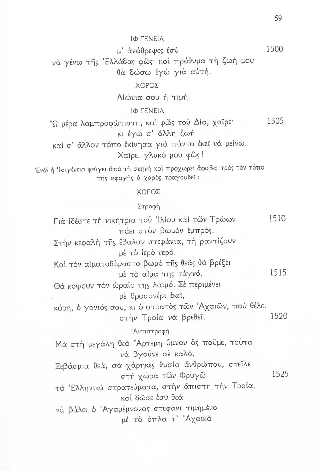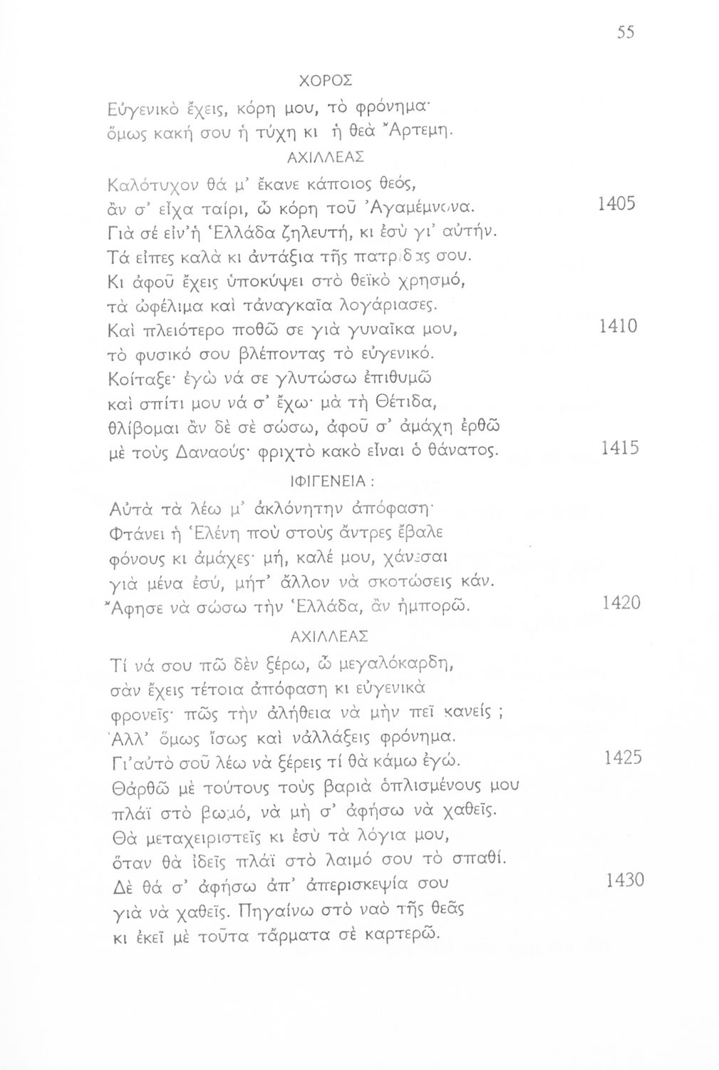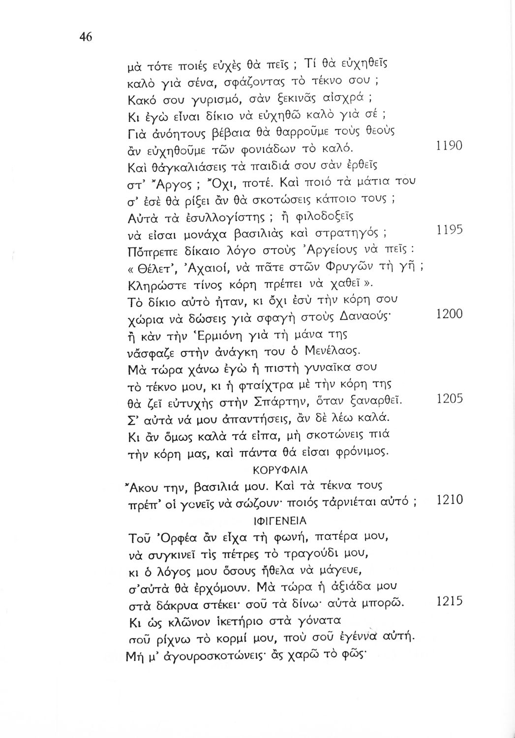 Σχολικό εγχειρίδιο Αρχαίων Ελληνικών Ε΄ Γυμνασίου που περιέχει εισαγωγή στο αρχαίο δράμα και στη ζωή και το έργο του Ευριπίδη, αποσπάσματα από την Ιφιγένεια η εν Αυλίδι και την Ιφιγένεια η εν Ταύροις και ερμηνευτικά σχόλια.