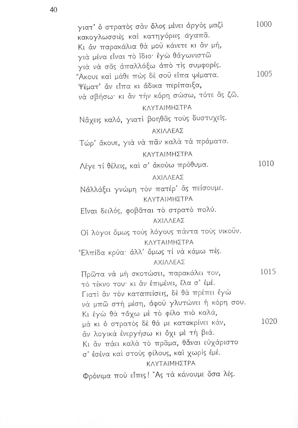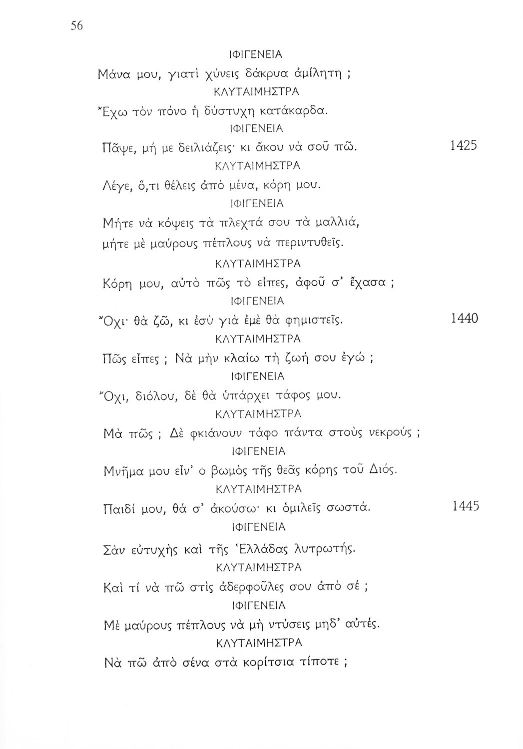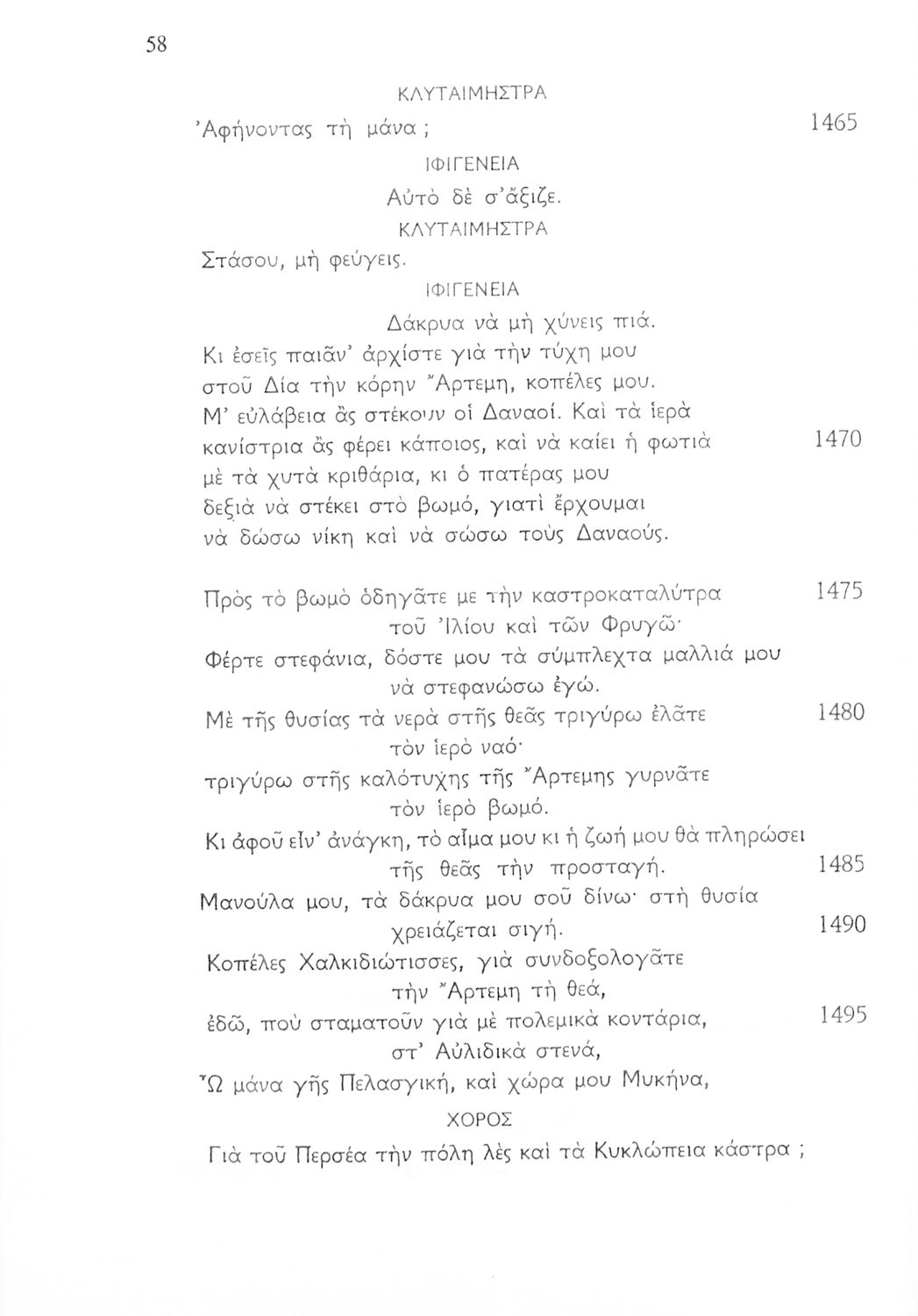 Σχολικό εγχειρίδιο Αρχαίων Ελληνικών Ε΄ Γυμνασίου που περιέχει εισαγωγή στο αρχαίο δράμα και στη ζωή και το έργο του Ευριπίδη, αποσπάσματα από την Ιφιγένεια η εν Αυλίδι και την Ιφιγένεια η εν Ταύροις και ερμηνευτικά σχόλια.