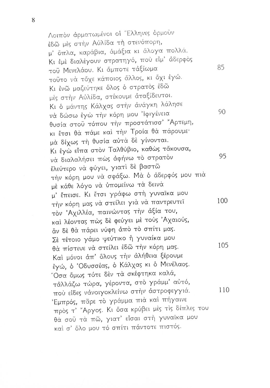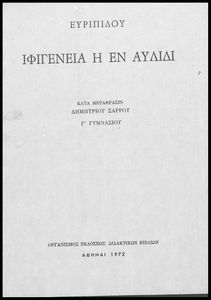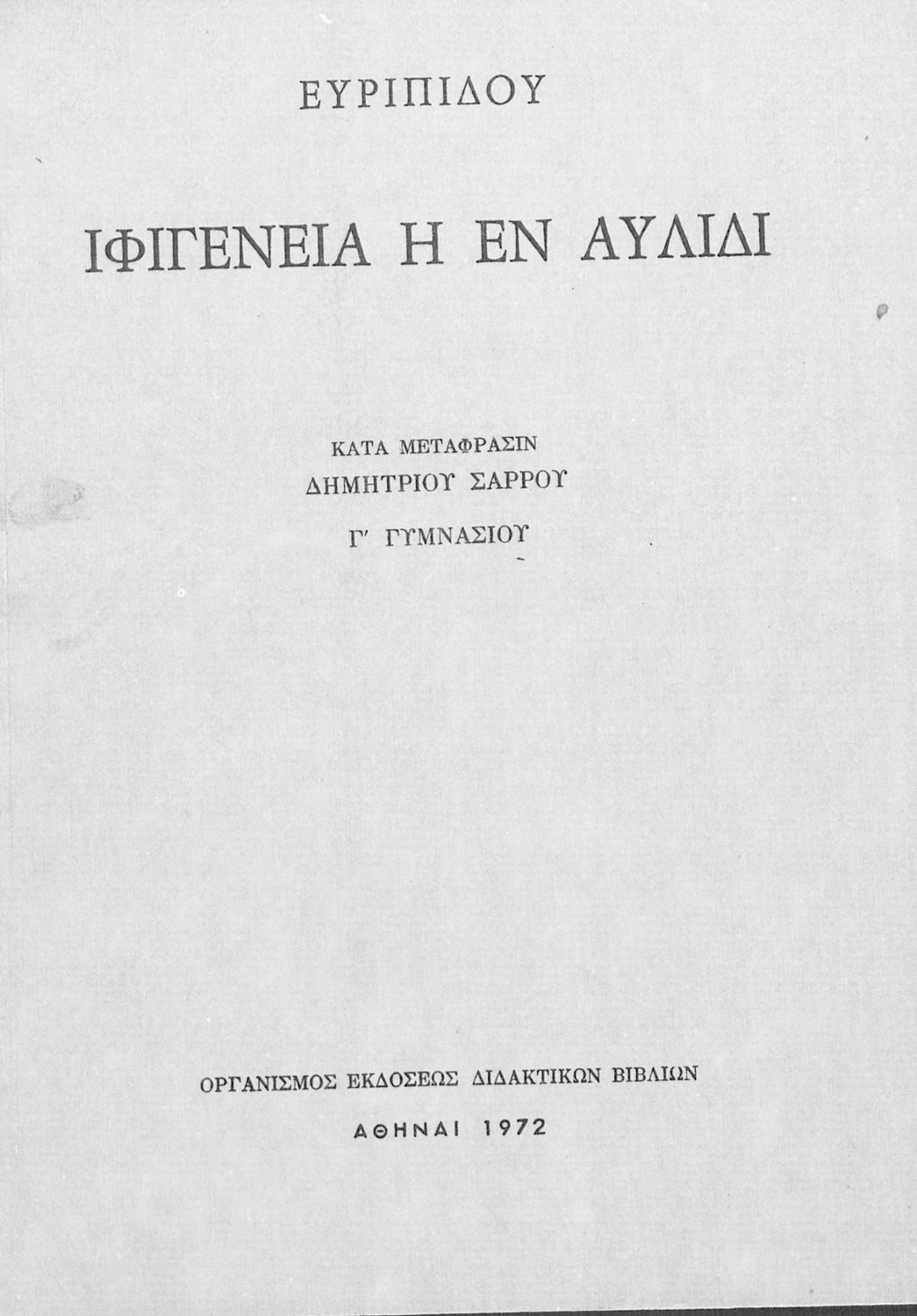 Σχολικό εγχειρίδιο Αρχαίων Ελληνικών Ε΄ Γυμνασίου που περιέχει εισαγωγή στο αρχαίο δράμα και στη ζωή και το έργο του Ευριπίδη, αποσπάσματα από την Ιφιγένεια η εν Αυλίδι και την Ιφιγένεια η εν Ταύροις και ερμηνευτικά σχόλια.