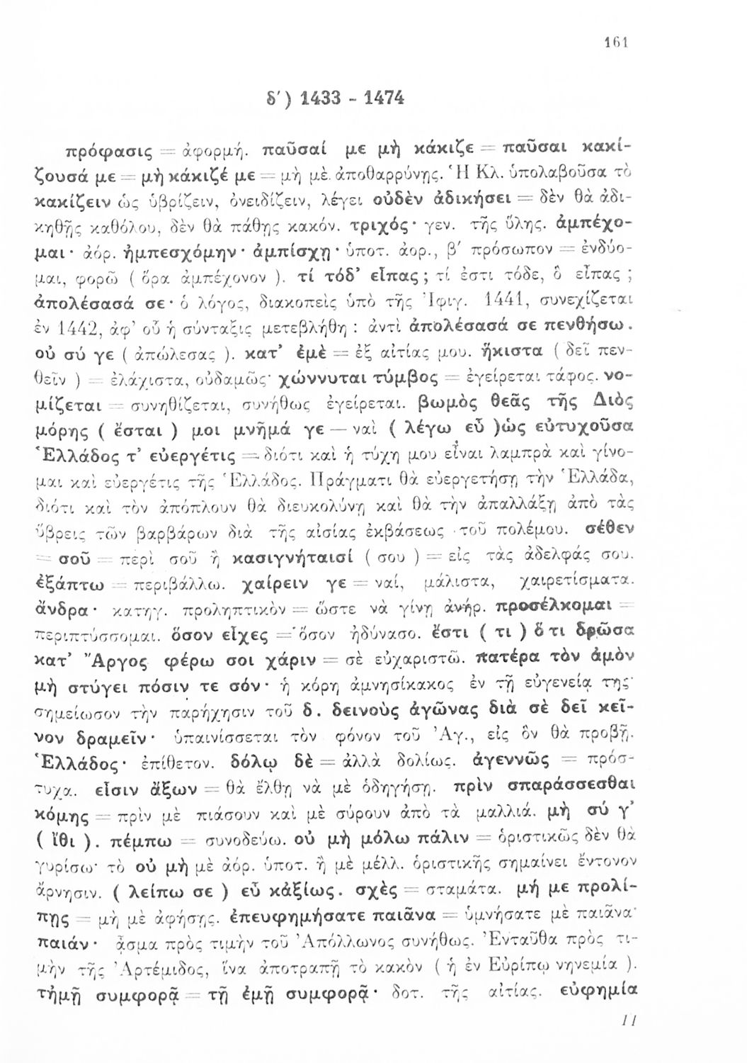 Σχολικό εγχειρίδιο Αρχαίων Ελληνικών για τη Γ' Γυμνασίου που περιλαμβάνει τη τραγωδία του Ευριπίδη Ιφιγένεια η εν Αυλίδι σε μετάφραση και ερμηνευτικές σημειώσεις. Φέρει το σύμβολο της δικτατορίας.