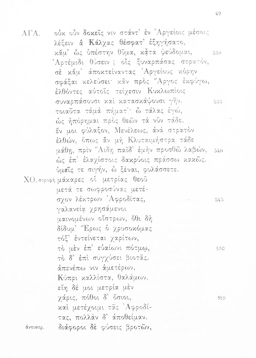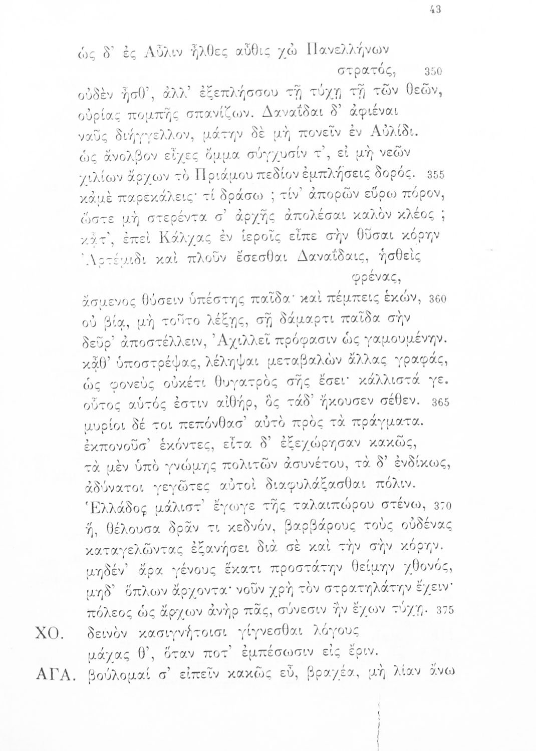 Ευριπίδου Ιφιγένεια η εν Αυλίδι, Γ΄ Γυμνασίου