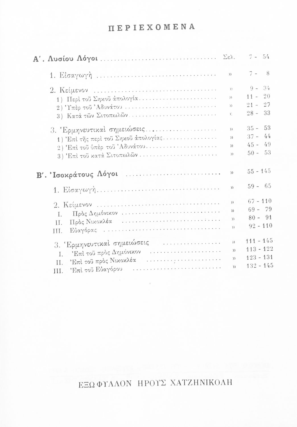 Λυσίας, Ισοκράτης, Κυριάκος Κοσμάς, Νικόλαος Ζαφειρίου (σχόλια)