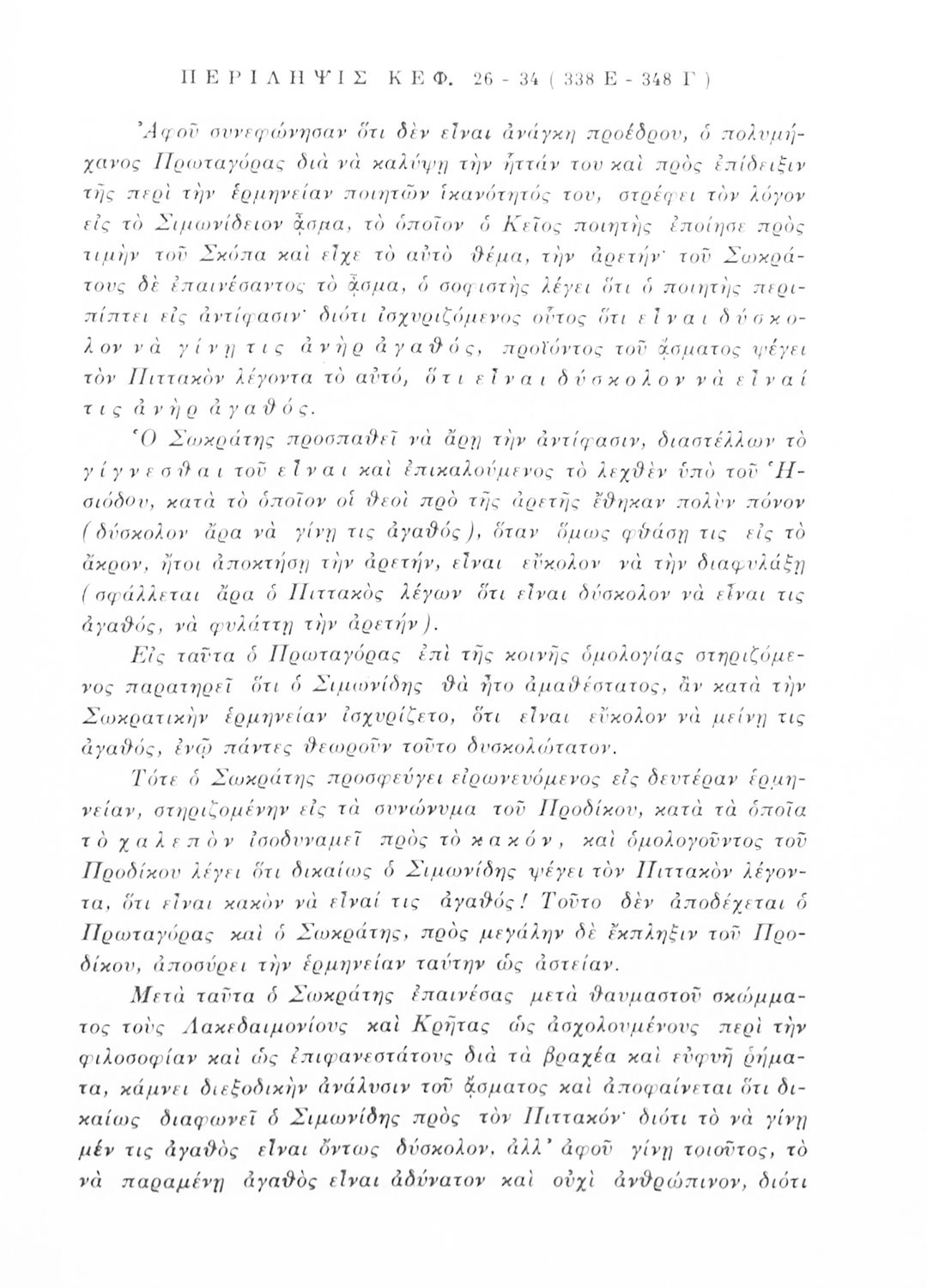 Μαθητικό βοήθημα Αρχαίων Ελληνικών για τους μαθητές της ΣΤ΄ τάξης των Γυμνασίων. Το βιβλίο περιέχει το έργο του Πλάτωνα 'Πρωταγόρας' συνοδευόμενο από ερμηνευτικά και γλωσσικά σχόλια.
