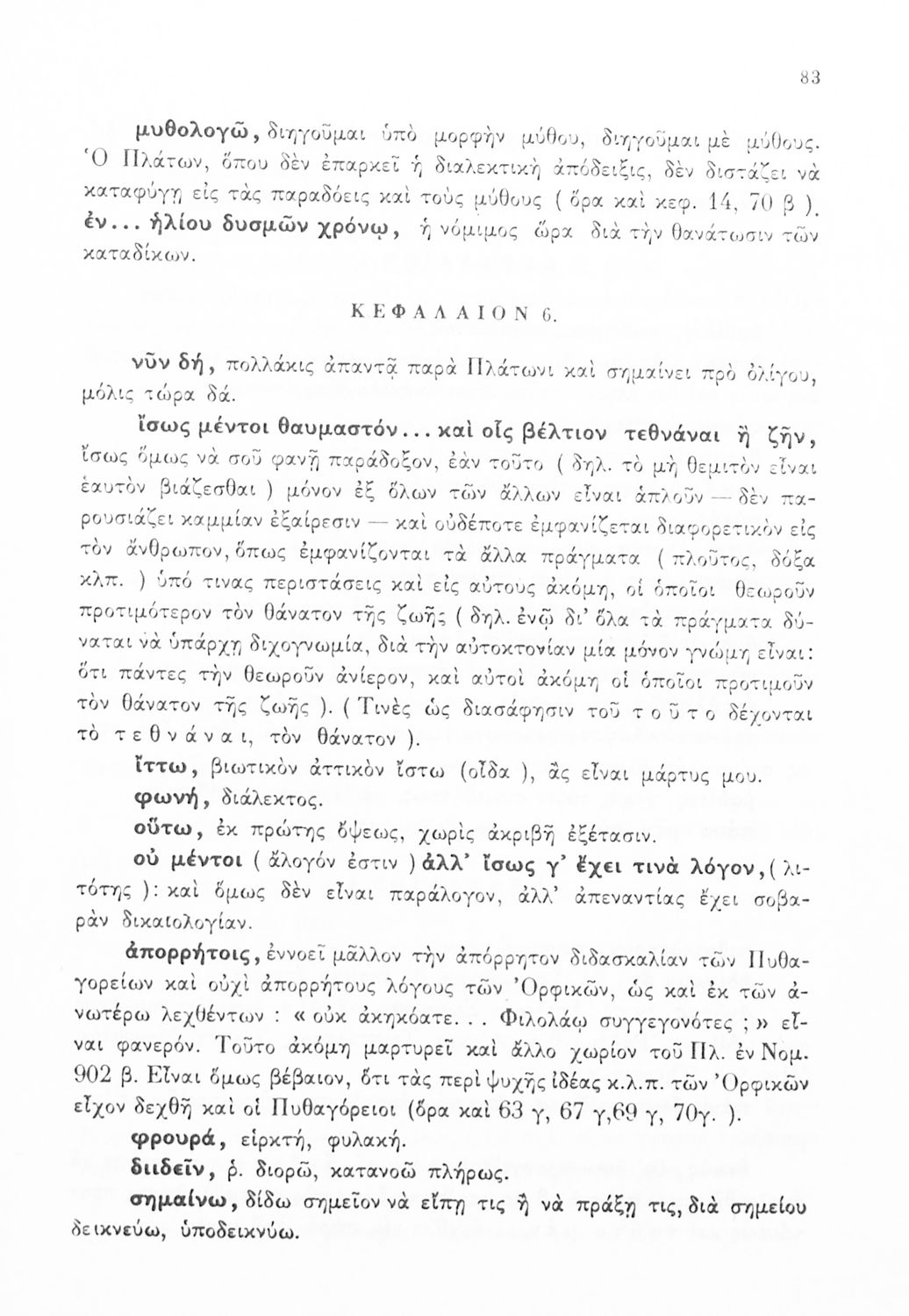 Σχολικό εγχειρίδιο Αρχαίων Ελληνικών για τους μαθητές της ΣΤ΄ τάξης των Γυμνασίων. Το βιβλίο περιέχει το έργο του Πλάτωνα 'Πρωταγόρας' συνοδευόμενο από ερμηνευτικά και γλωσσικά σχόλια. Φέρει το σύμβολο της δικτατορίας.