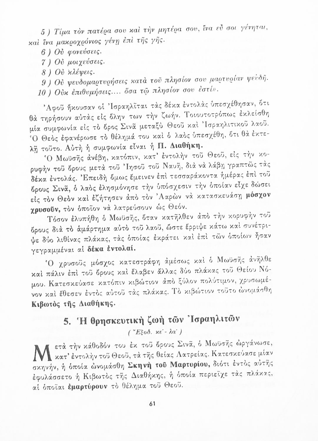 Σχολικό εγχειρίδιο Θρησκευτικών Α΄ Γυμνασίου που περιλαμβάνει εισαγωγή στην Αγία Γραφή, και συνιστά μία εξιστόρηση της Παλαιάς Διαθήκης από τη δημιουργία του κόσμου ως τους Προφήτες.