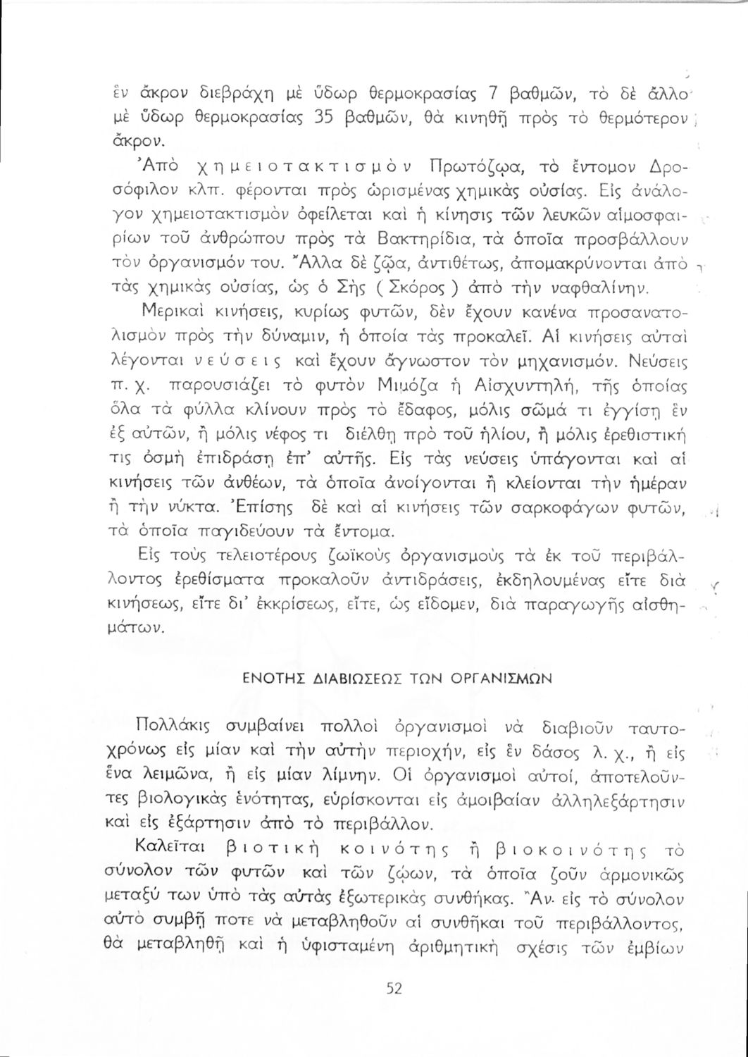 Σχολικό εγχειρίδιο Βιολογίας Δ΄ Γυμνασίου που εστιάζει στις συνθήκες γέννησης, μεταβολής και θανάτου των έμβιων οργανισμών. Ο συγγραφέας ήταν καθηγητής της γενικής Βιολογίας στο Πανεπιστήμιο Αθηνών.