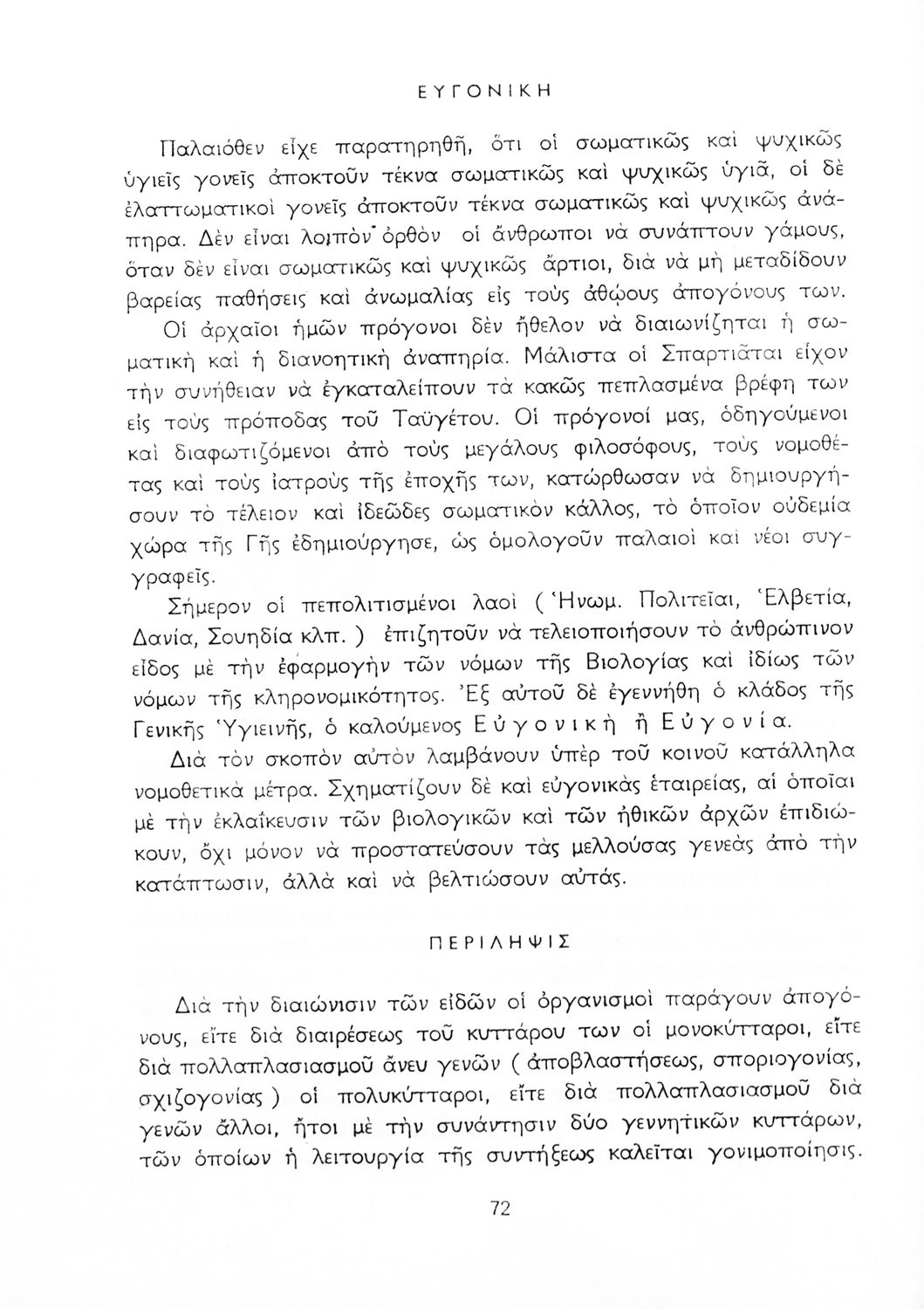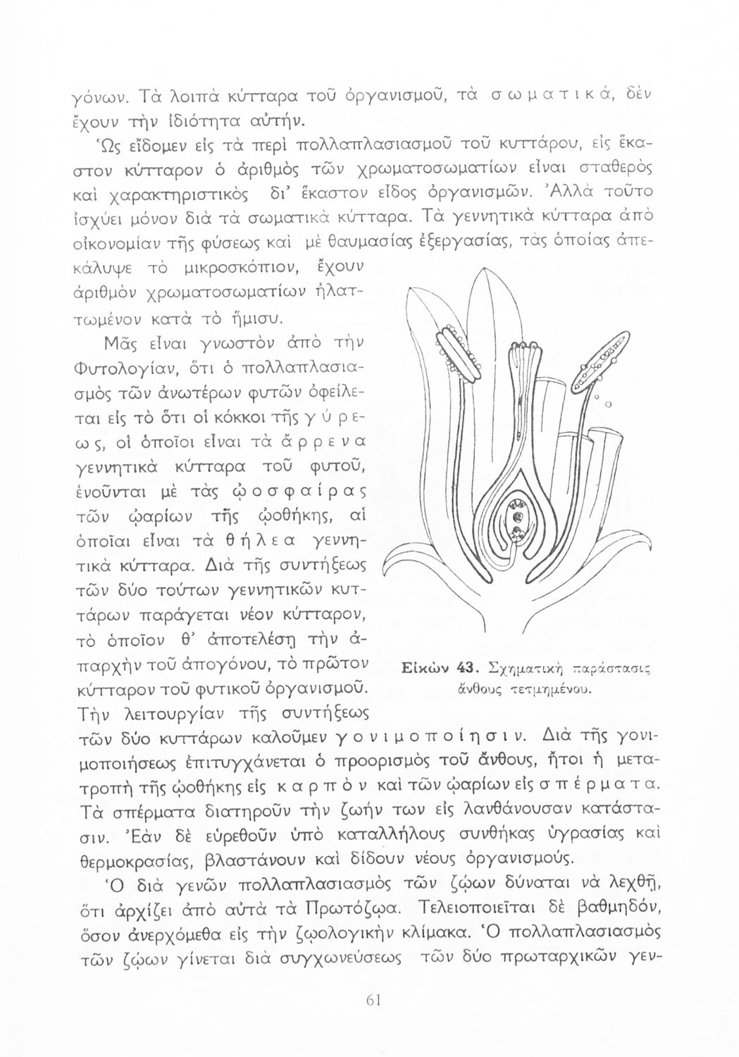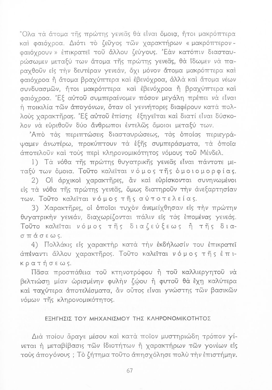 Σχολικό εγχειρίδιο Βιολογίας για τους μαθητές της Γ΄ Γυμνασίου. Περιέχει μια γενική επισκόπηση της Βιολογίας αρχίζοντας με τα βασικά δομικά στοιχεία κάθε οργανισμού, τα ανόργανα και οργανικά σώματα και τα γνωρίσματά τους, τις συνθήκες στις οποίες αναπτύσσονται και εξελίσσονται οι μορφές ζωής, όπως θερμότητα, πίεση, υγρασία. Τέλος το βιβλίο ασχολείται με ζητήματα κληρονομικότητας και την έννοια της εξέλιξης.