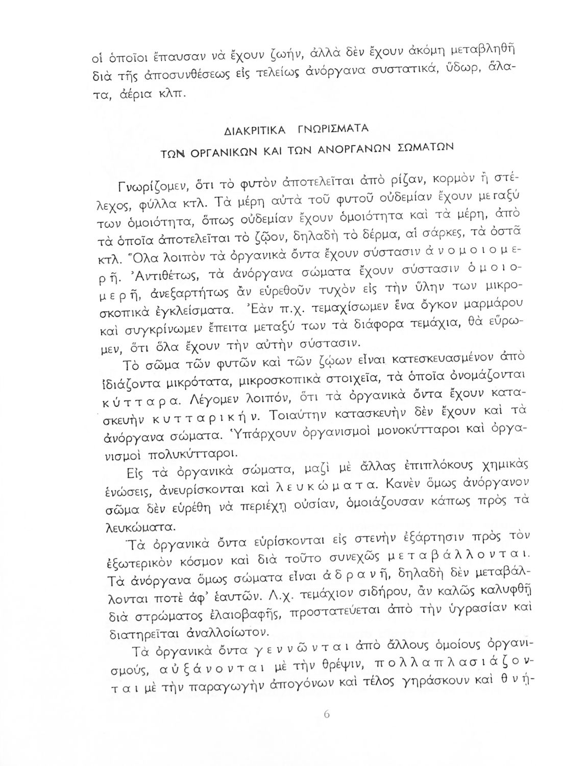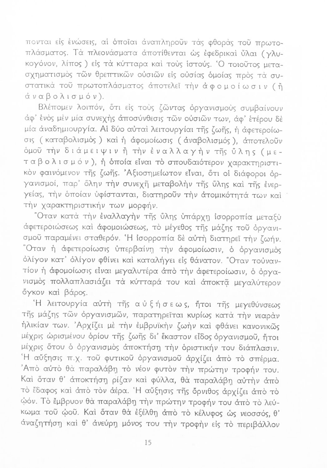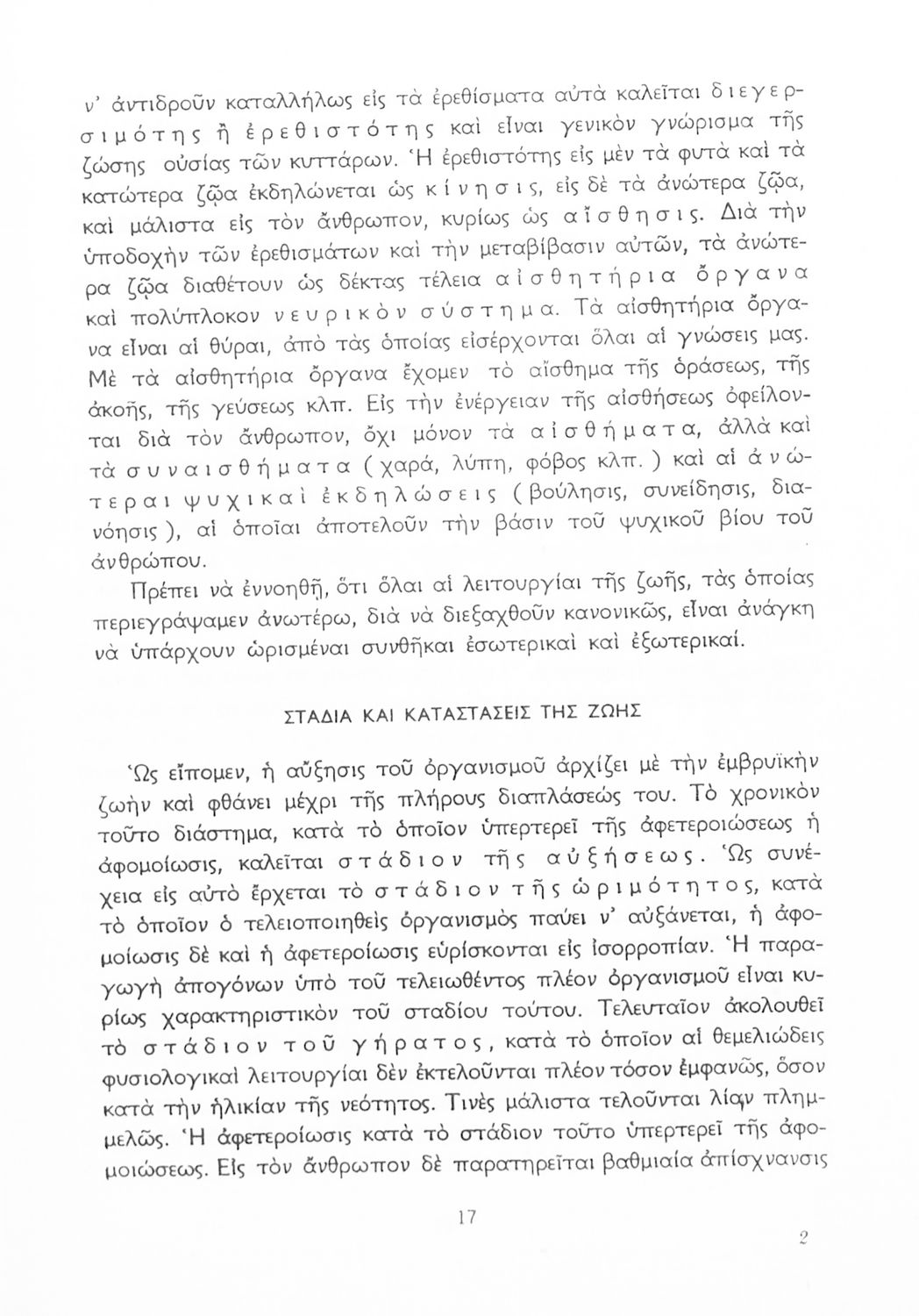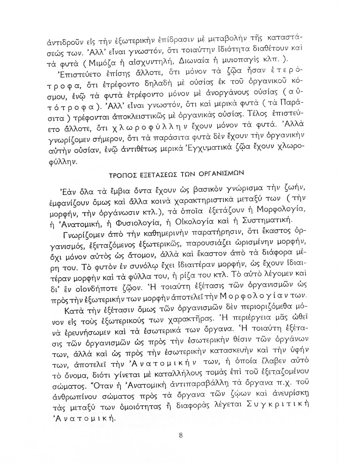 Σχολικό εγχειρίδιο Βιολογίας Δ΄ Γυμνασίου που εστιάζει στις συνθήκες γέννησης, μεταβολής και θανάτου των έμβιων οργανισμών. Ο συγγραφέας ήταν καθηγητής της γενικής Βιολογίας στο Πανεπιστήμιο Αθηνών.