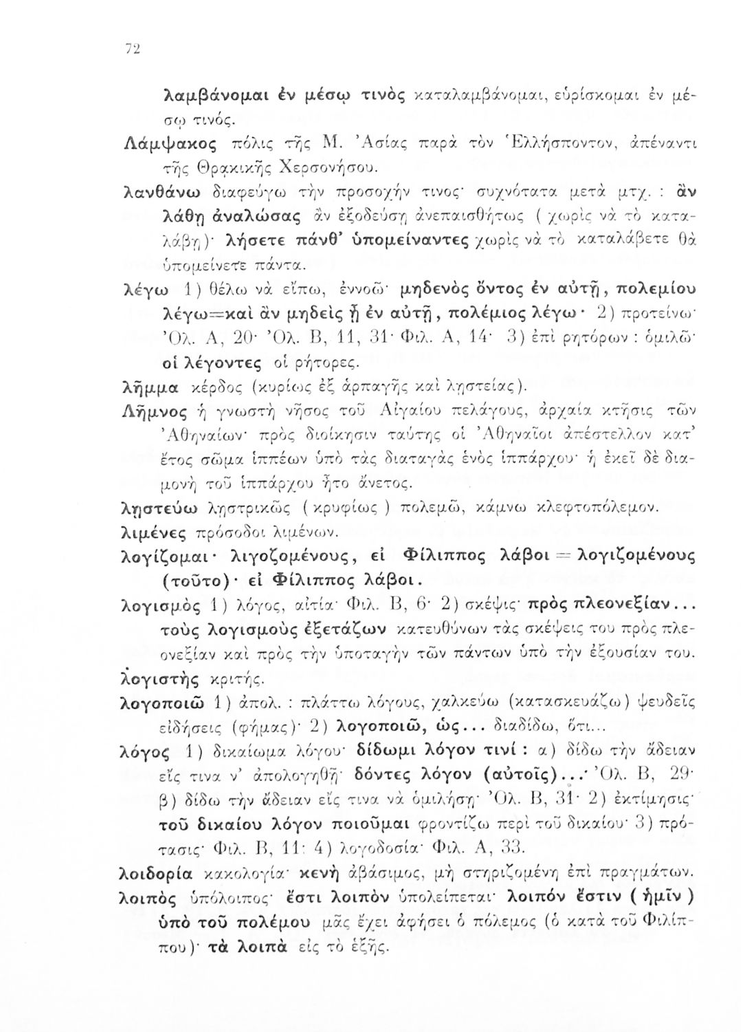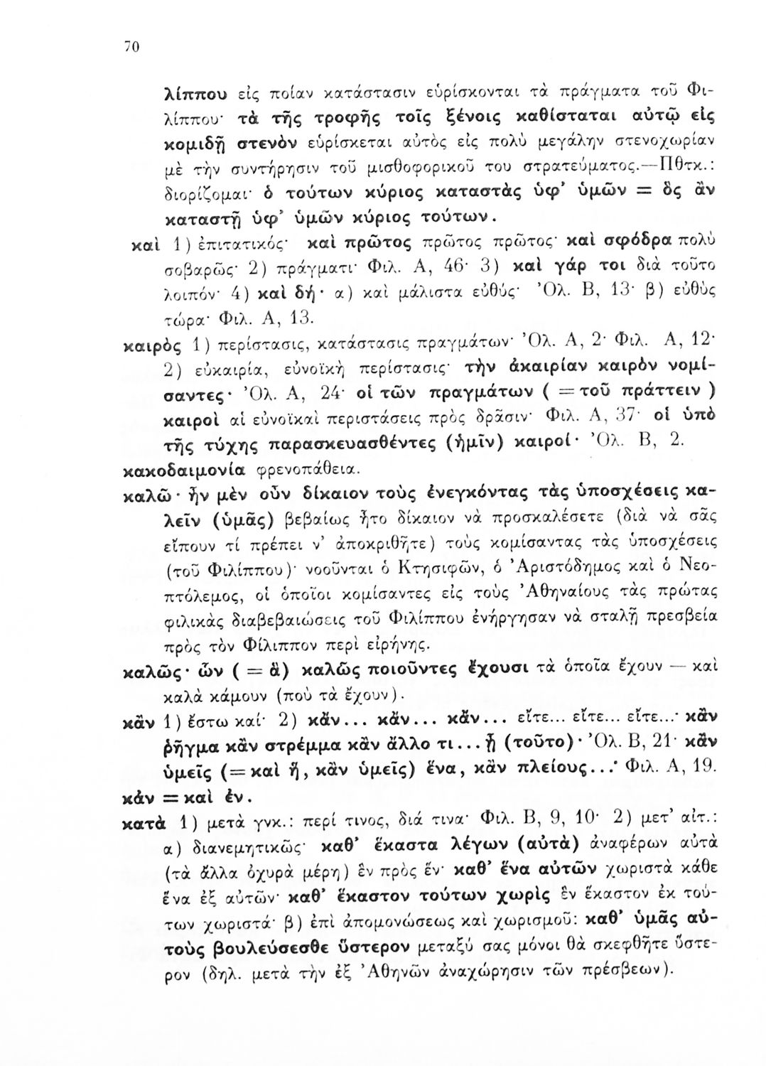 Δημοσθένης, Λυκούργος, Ισοκράτης, Κυριάκος Κοσμάς, Νικ. Φραγκίσκος, Μιχ. Περίδης, Γ. Παπαοικονόμου (σχόλια)